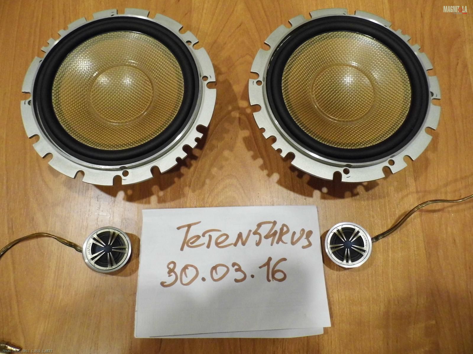 Addzest SRT1650s Отличный 2-ух полосный комплект, сделан в Японии для внутреннего рынка. Миды из арамидного волокна, быстрые, хлесткие с шикарной серединой, подводящие вшиты в шайбу. Вч шелковые, металлические корпуса. Очень приличный комплект, за вменяемые деньги. Для вч есть кроссоверы. Цена 6500 рублей, обмен на вч из комплекта Polk Audio SR6500.