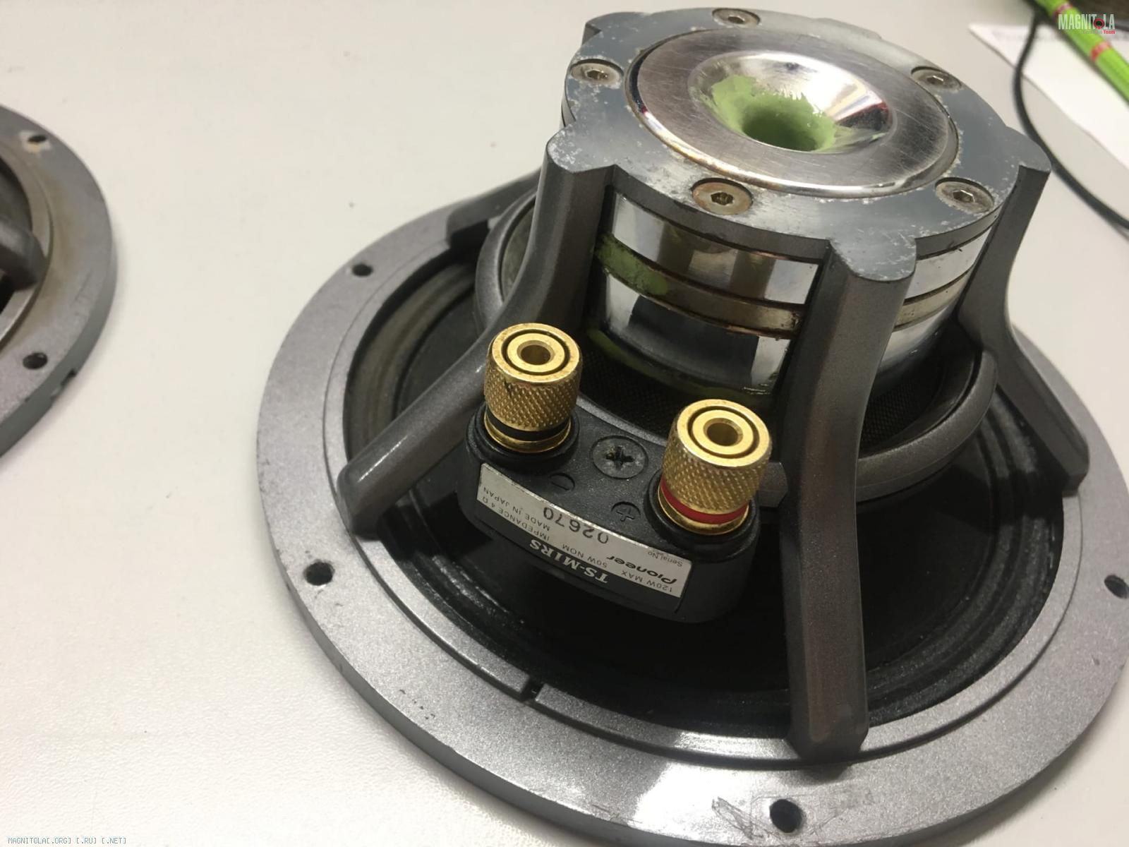 Комплект трехполоски Pioneer . Собирался по всей стране , вч и мидбас покупались здесь на форуме , один мидбас разбирался для чистки от окалины (катушка не задета , имеется фото) . Сч в отличеом состоянии , следы пайки на разъемах и следы монтажа на корзине . На сетке и корпусе вч местами отслоение лака. Все отыграло у меня один сезон , причина продажи переход на больший калибр акустики.