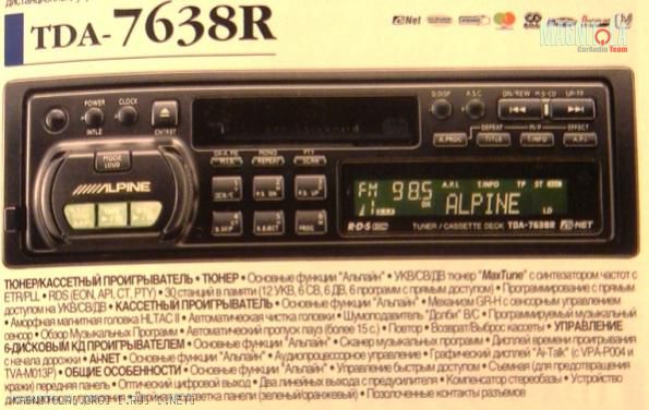 Alpine TDA-7638R до 1995г.в. (аналог Alpine TDA-7659R, но с кнопочным без электронного регулятора громкости дизайном /черный/двойная подсветка/2 pre-out/без 4V/без BBE/Dolby B/C NR/зато + оптический выход! и матричный дисплей) и Alpine TDA-7537R до 1995г.в. (черный/двойная подсветка/2 pre-out/30Wx4/ зато вообще на "салазках" - были и такие)