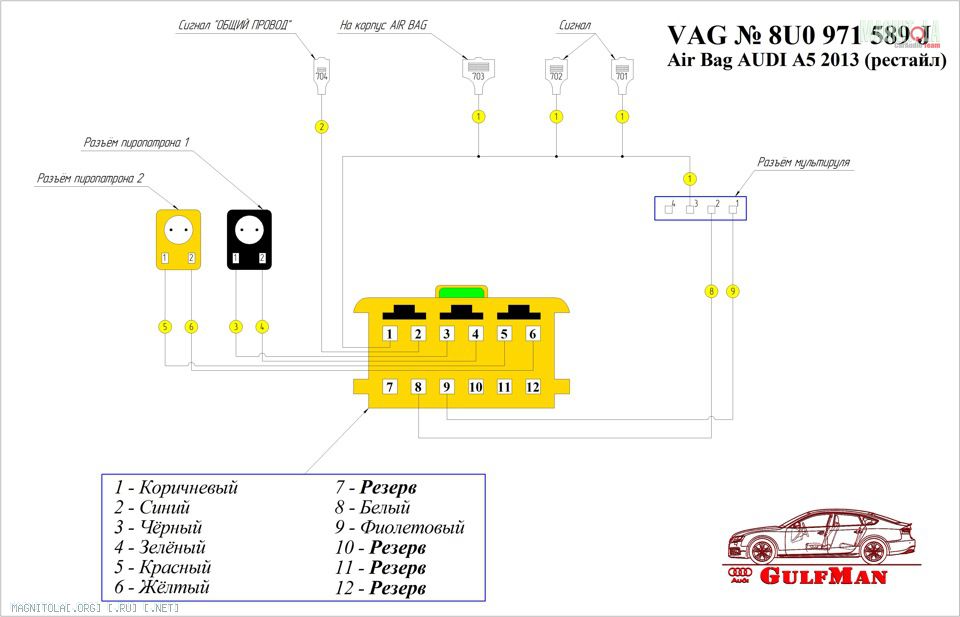 Нашел схему косы аирбэга, где есть этот разъем и куда уходят сигналы на основной разъем...
