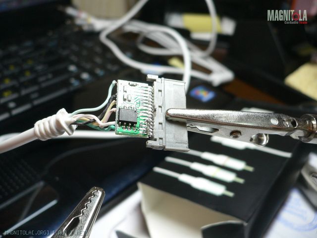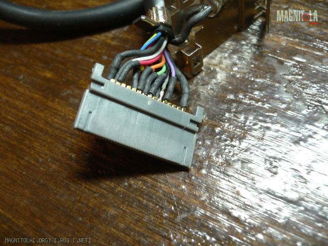 Глянул на изображение проводка а так же нашел распиновку разъема… прикинул картинки к проводу с разъемом фул спид на магнитоле, взял провод с 3,5 джеком, на другом конце хотел сделать штекера, но не получилось, поэтому разобрал сам разъем full speed на магнитоле, определил 3 провода как бы подходящие для aux (черный, белый и красный) подключил к проводу с 3,5 (земля-черный и белый с красным (левый-правый), но блин, когда включаю магнитолу нет режима aux, потом в интернете нашел другую распиновку, там показаны с другой стороны пины для aux, попробовал... на магнитоле появляется режим i-pod, но это не то...