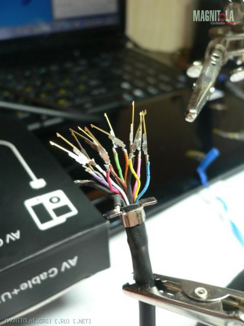 Обошел весь митинский и тоже ничего не нашел. Решил попробовать найти какой-нибудь кабель со всеми пинами, так как один я уже разбирал. Нашел у себя дома китайскую зарядку под айфон и разобрав ёё нашел там только 4ре пина. Остальных вообще не было. В одном ларьке с продавцом нашли кабель AV Cable+USB, где были все пины. Купил в надежде на то, что они там не будут обрезаны как в альповском разъеме.