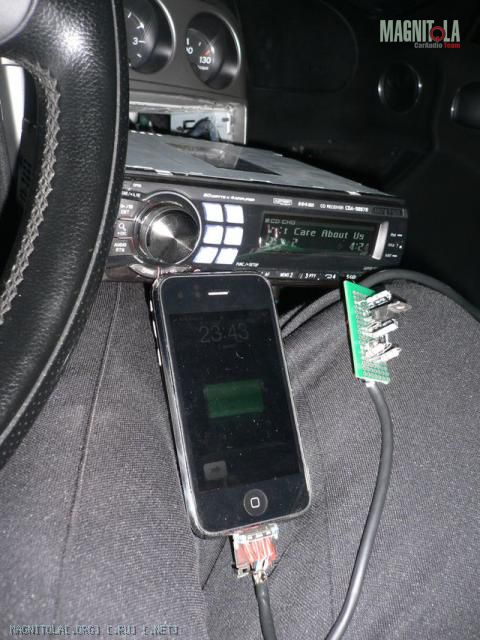 Можно еще припаять резистор на 68кОм на 21 пин, чтобы айфон не выдавал ошибок, что "Аксессуар не предназначен для работы с iPhone". Если докачу до митинского, то сделаю. Если нет, то и фиг с ним :)