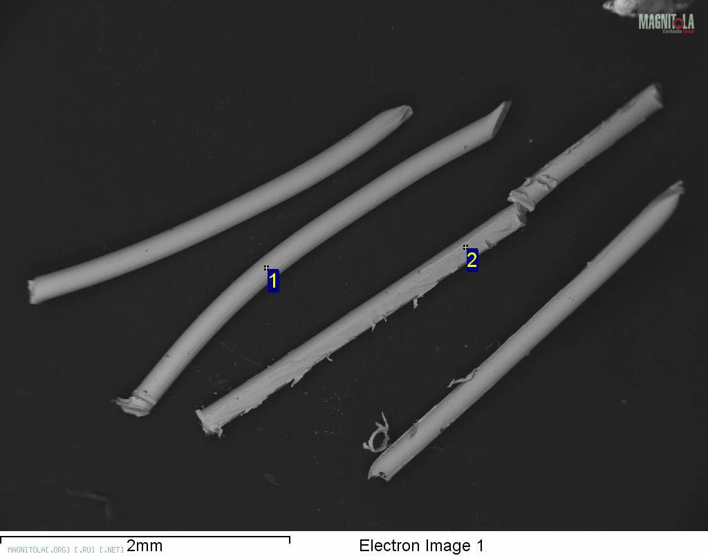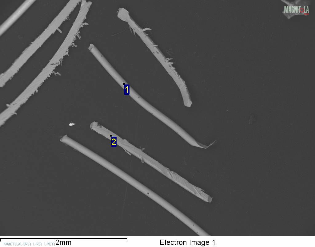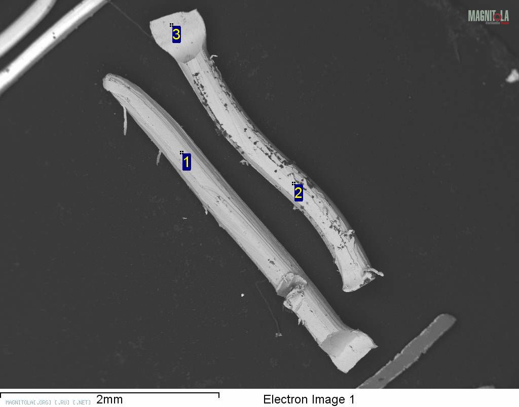 В центре моножилы все таки медь, ее видно на фото-темного цвета. Точка №2 : 94% меди и 6 серебра, но на фотке опять таки видно, что серебрянное покрытие смазалось в ту сторону, видимо при откусывании... т.е. скорее там чистая медь;)