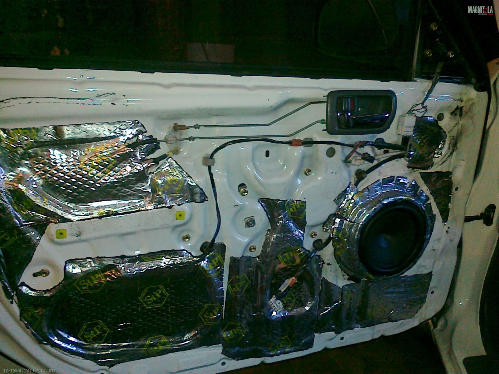 Виброй шумкой ничего не обкатано, подиумы в перд дверях не разборные и на каких то штатных клепках (как снимать кроме высверливания хз, может кто подскажет), провода все штатные.