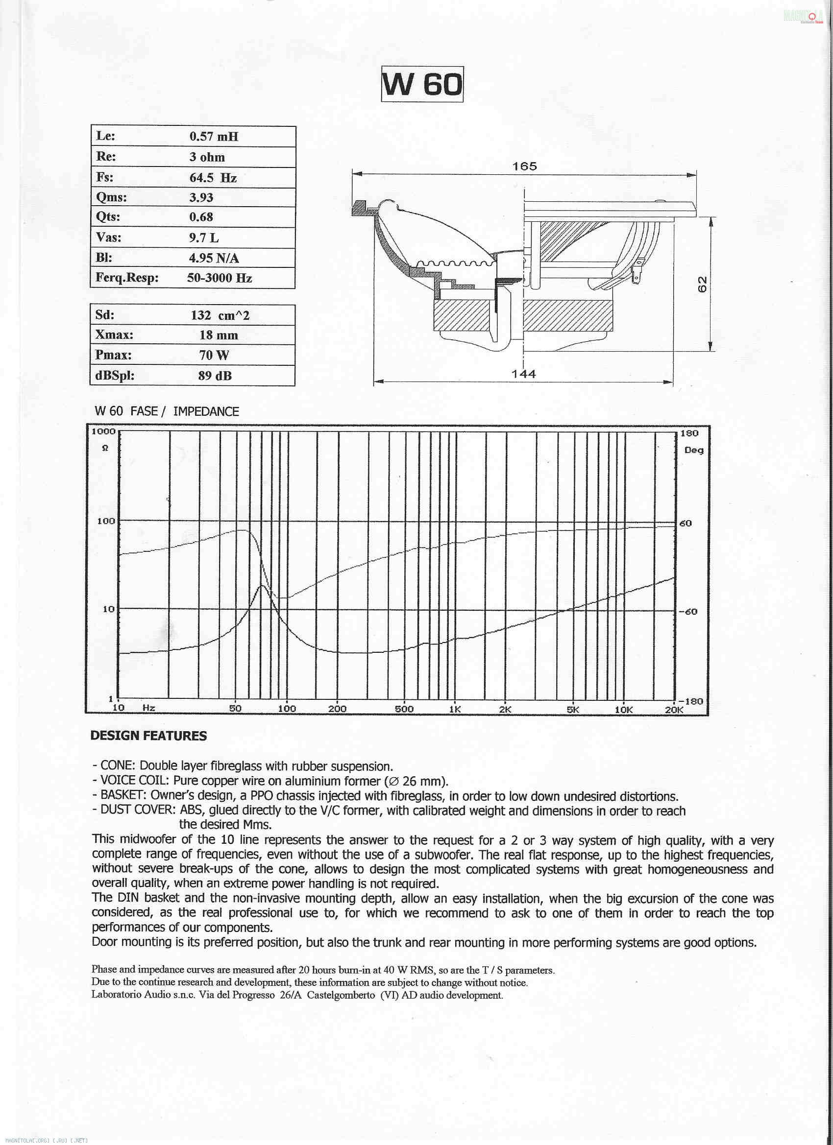 В комплекте акустики AD60 лежит спецификация к мидам, твитерам и кроссам, но она немного расходится с тем что пишут интернете.