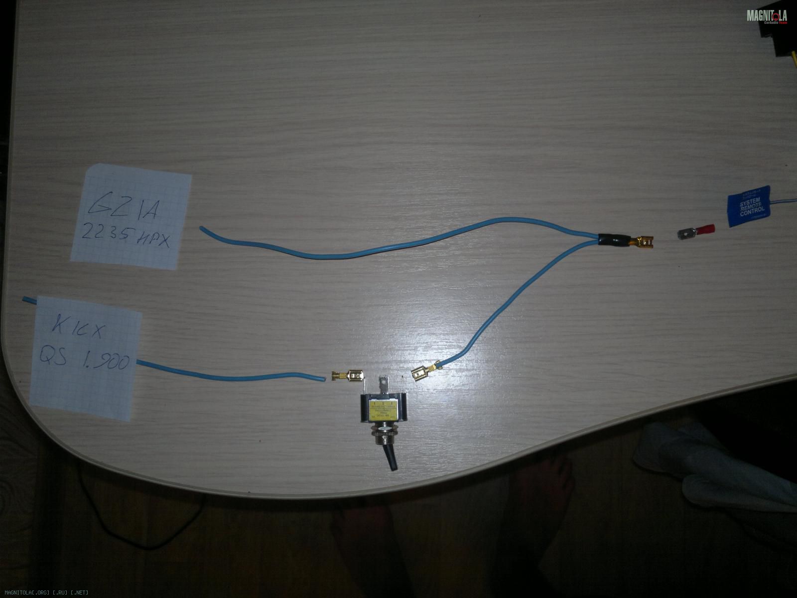 Хочу распределить управляющий кабель remote на два усилителя,для их включения при включении магнитолы. Тумблер- для отключения сабвуфера при необходимости.