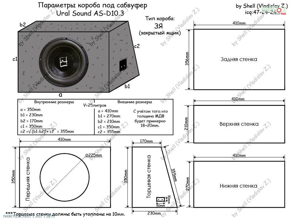 боковые стенки по 20мм, лобовая (в которую прикрутите динамик и тыльная(за динамиком) 40мм=2*20))