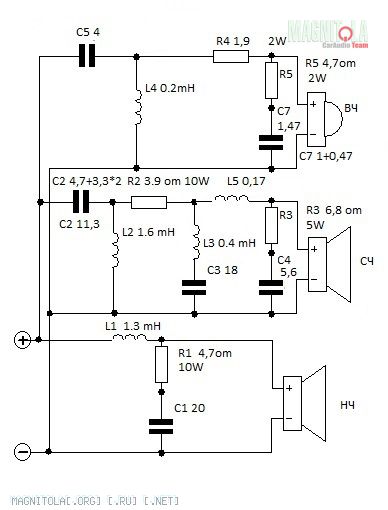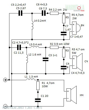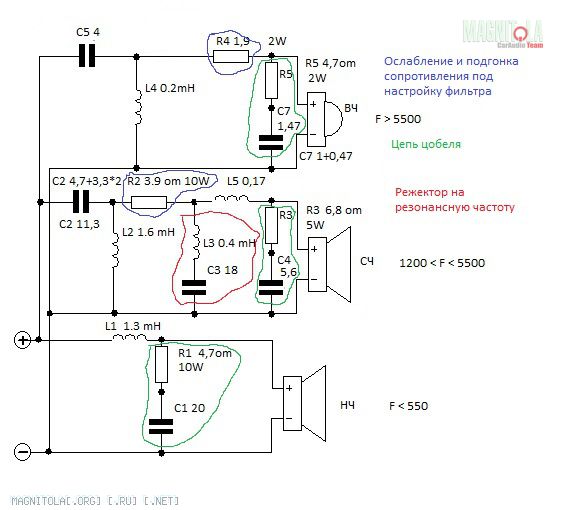 Всё подбирал на слух, по программам не очень выходило т.к. нет точных параметров СЧ и ВЧ. С фильтром ВЧ ещё буду экспериментировать.
