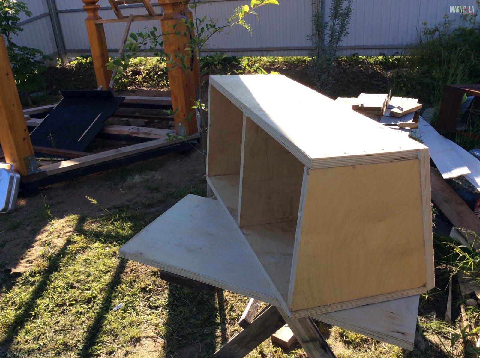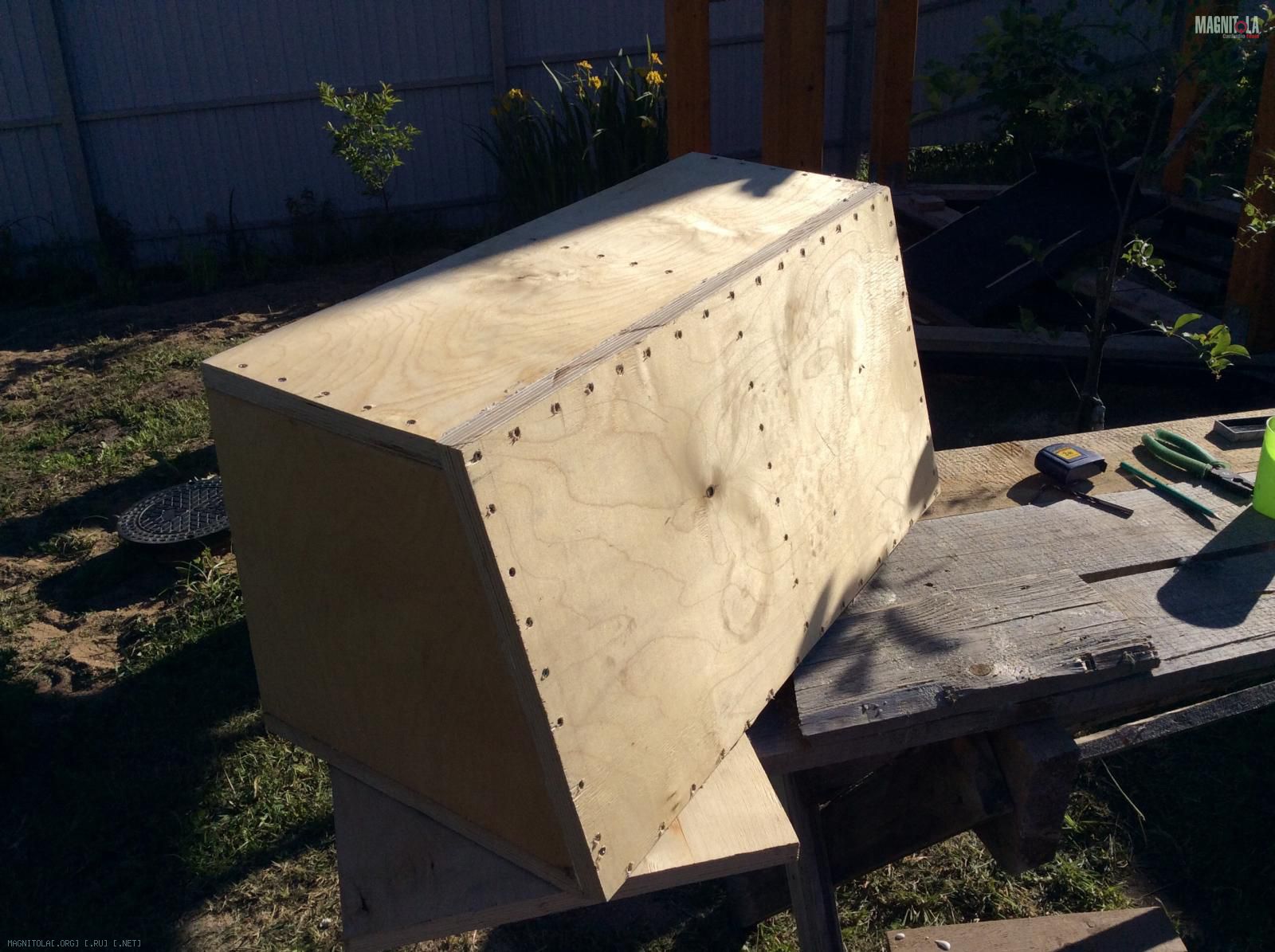 Пока не пропилил под терминал и фронталку. Динов нет еще. Клеил на ПВА. Фанера 20 мм.