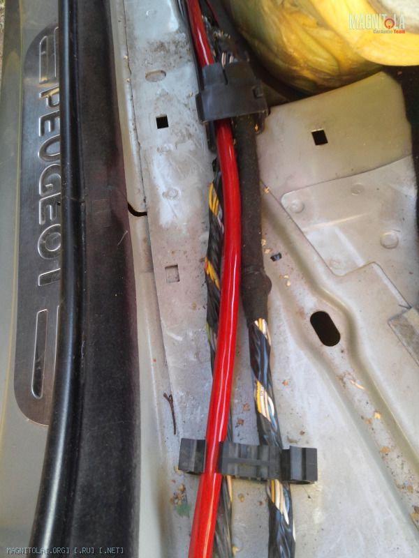 4 - проложил провода, силовой 3Ga по левому порогу, межблочный по правому, акустические посередине, поставил предохранитель на 120А и дистрибьютер питания