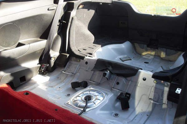 по салону зада нет и не будет пока что тк машина иногда ездит на гонки кольцевые и по этому важно чтобы саб можно было быстро снять