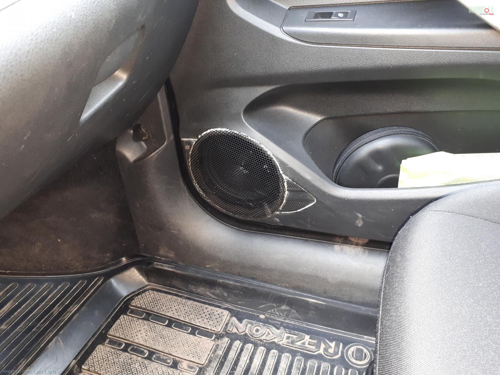 Были изготовлены фанерные проставки, увеличены отверстия в панели двери под новый размер акустики. Все это болтами прикручено.