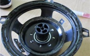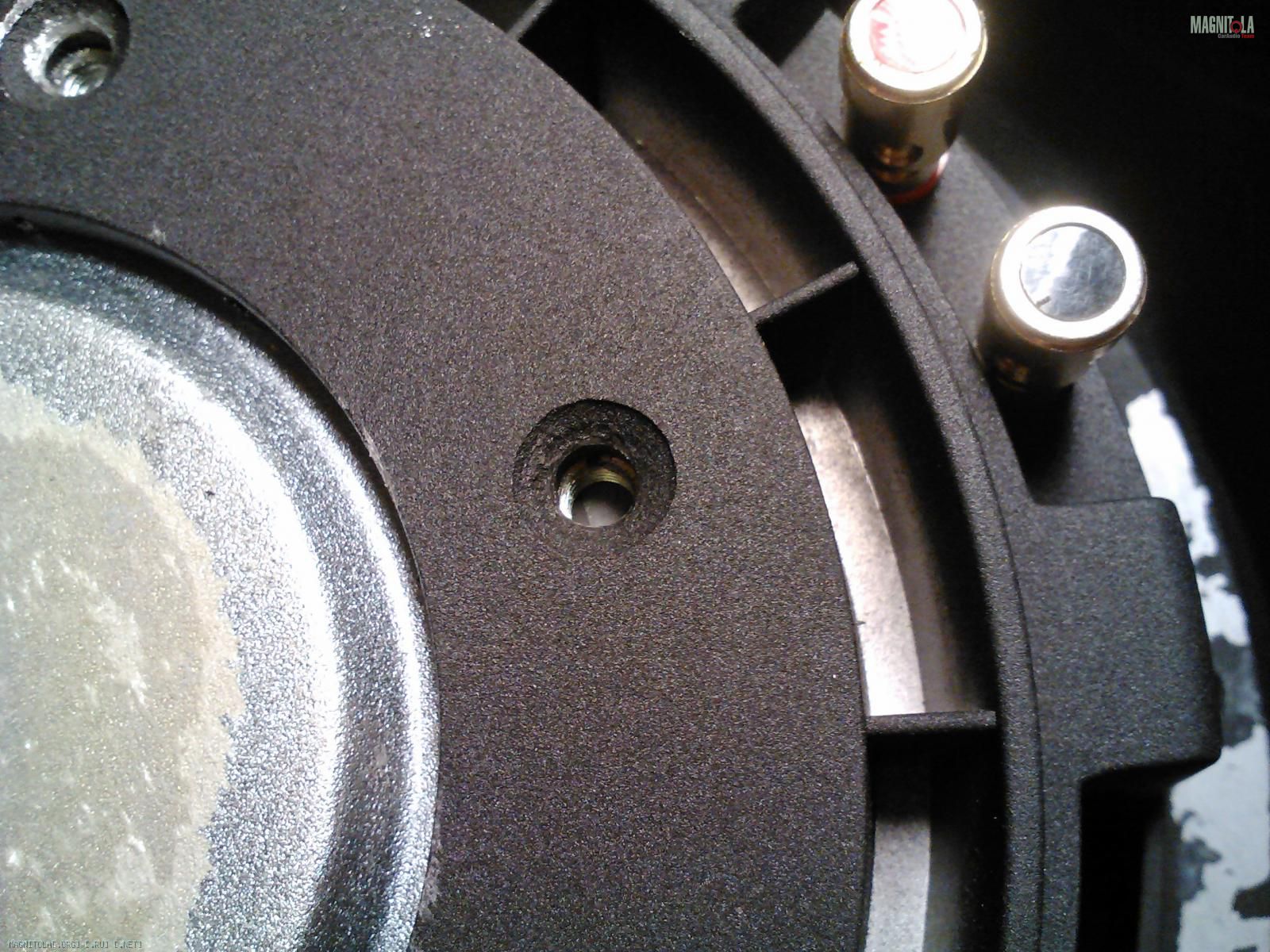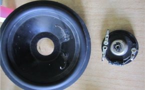 Верхнюю мембрану аккуратно снимаем и после этого смачиваем ацетоном. Аналогичную работу нужно сделать и с нижним диффузором. Контакты нужно отпаять напильником. Центральный болт ударяем и начинаем снимать внутренности.Если обмотка катушки не в идеальном состоянии, тогда в таком случае