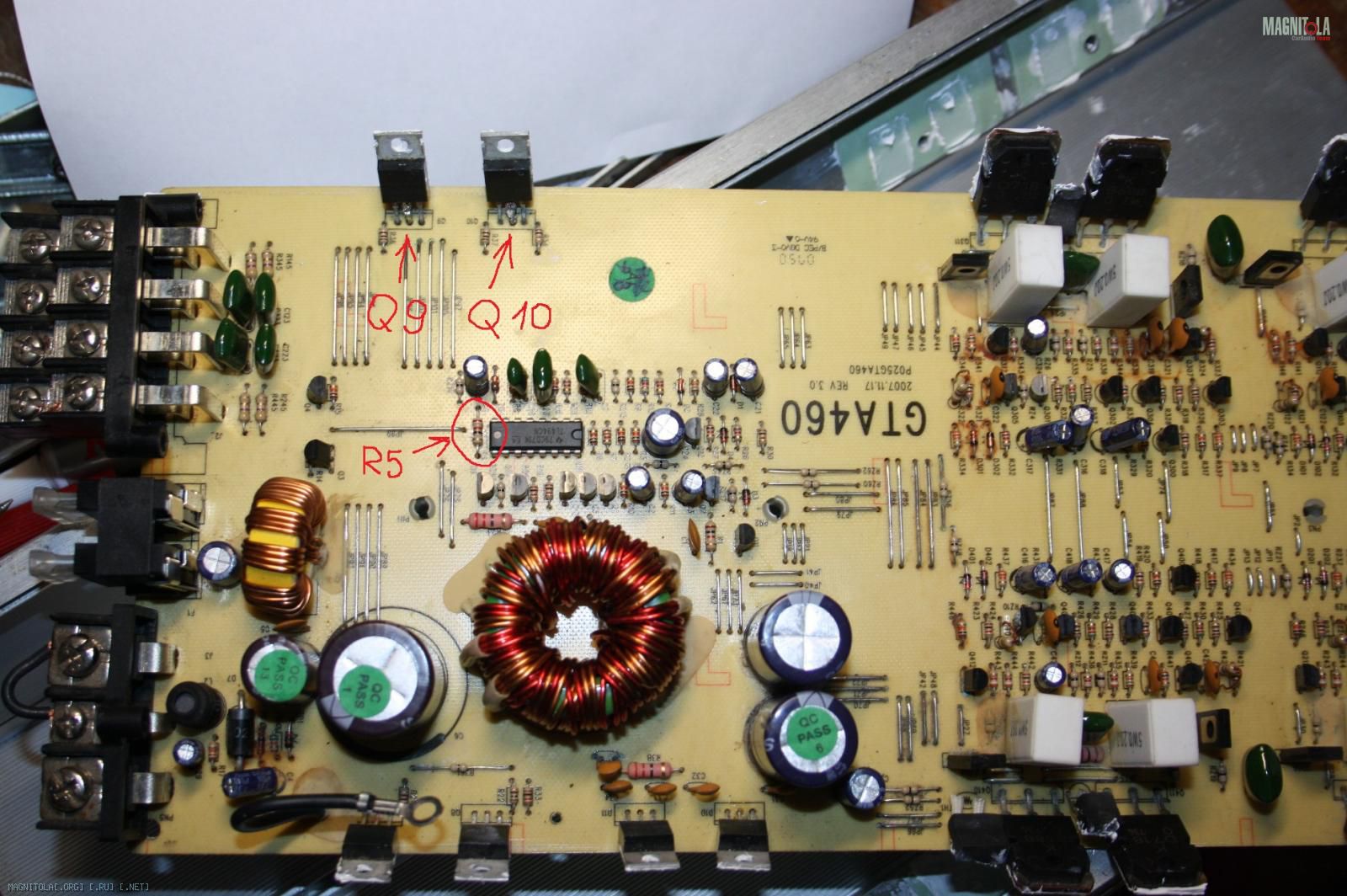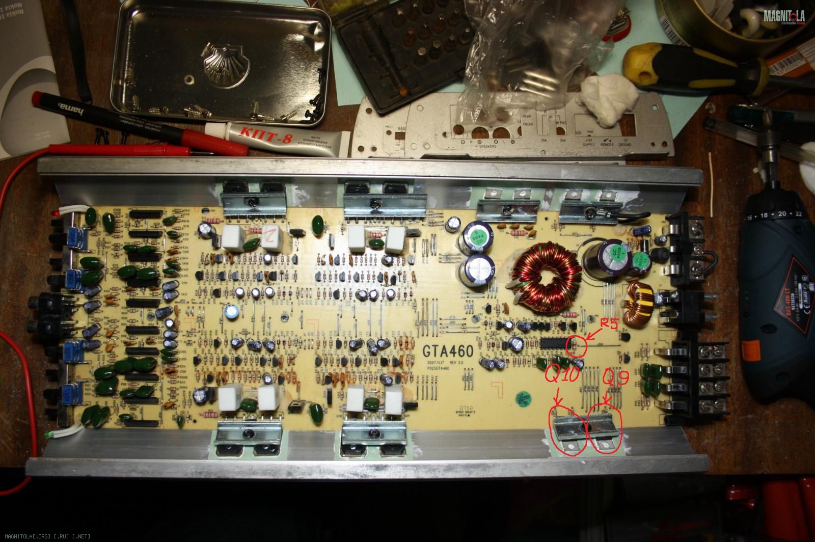 Так вот, вопросы такие: есть ли у кого схема платы данного усилителя и что можно сделать (и как)? И еще, чем можно заменить транзисторы Q9, Q10 (этих в продаже не нашел)???