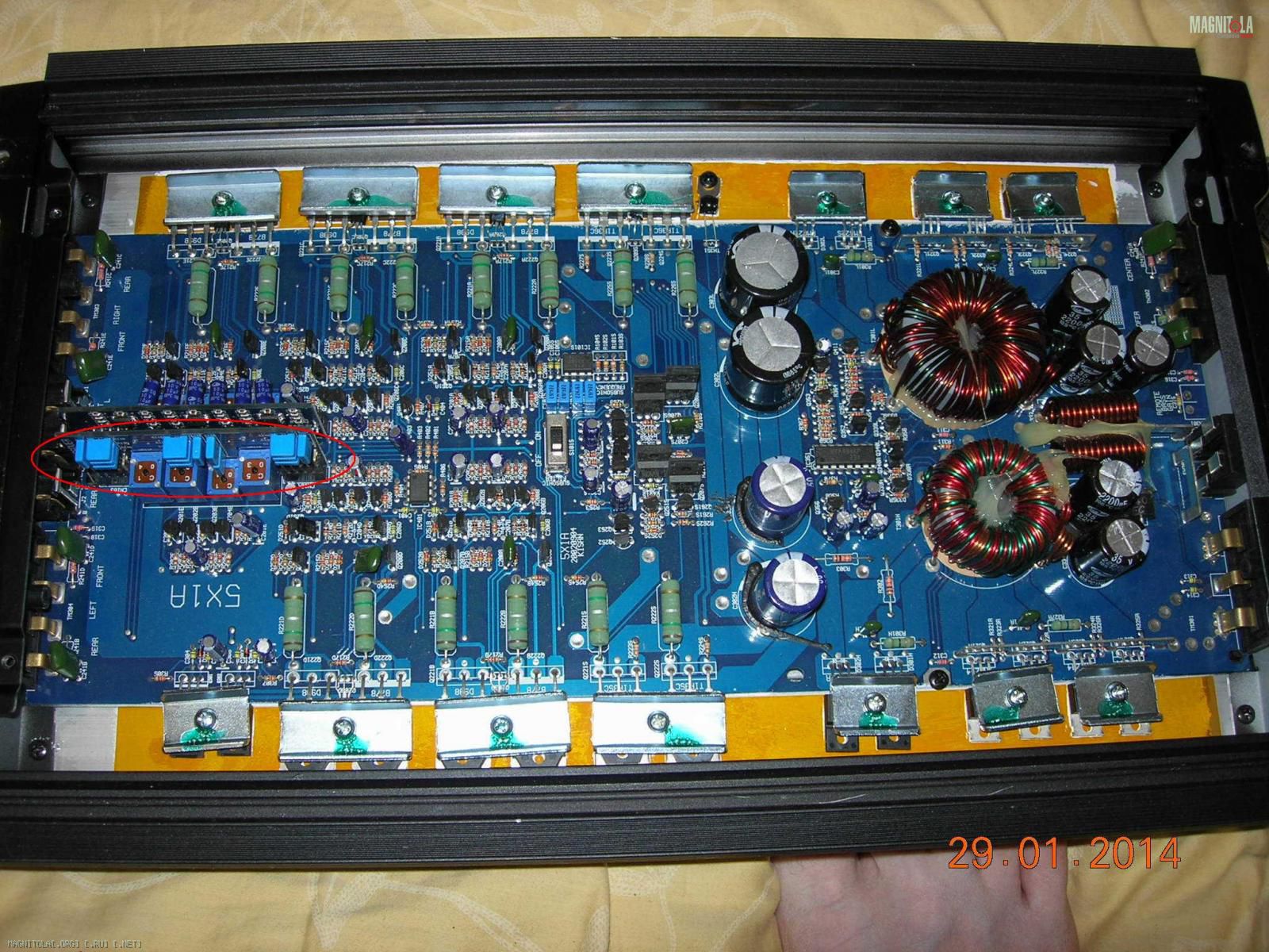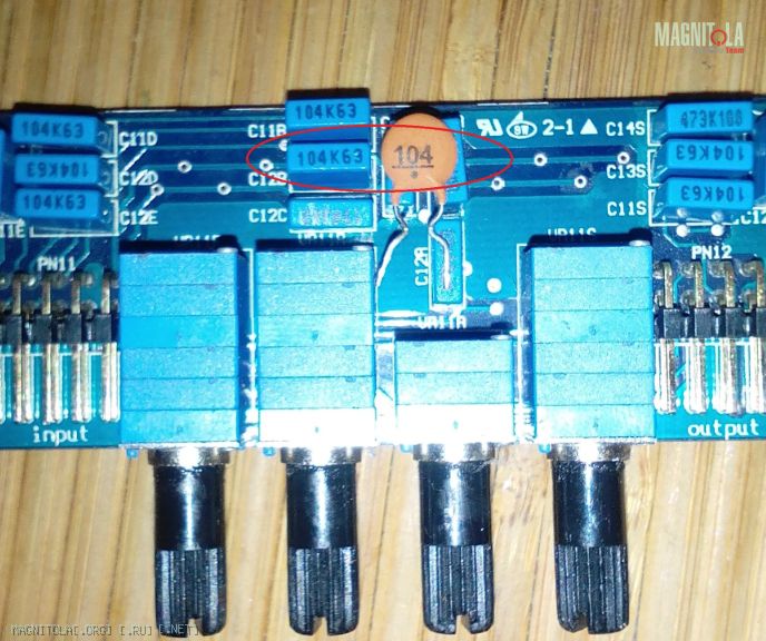 Этот конденсатор стоит на небольшой съемной плате кроссовера(I-OVER) , на REAR CH (20Hz - 200Hz) канале в цепи регулировочного Potentiometera.