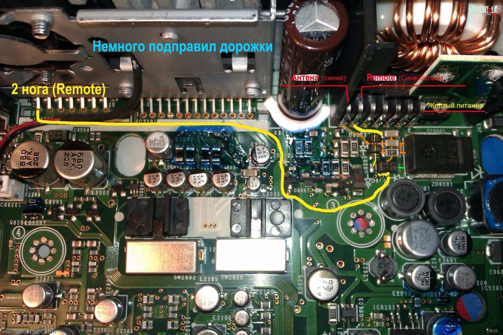 Вложение 1271825 На фото поправил откуда и куда идет дорожка Remote от разъема (дорожка нарисована желтым). На разьеме 2й пин уходит на обратную сторону платы и идет через пару диодов на 2й пин микросхемы HA13165H.