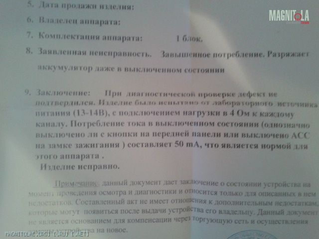 Магнитолу сегодня забрала из сервиса. в заключении написано что дефектов нет и 50мапмер