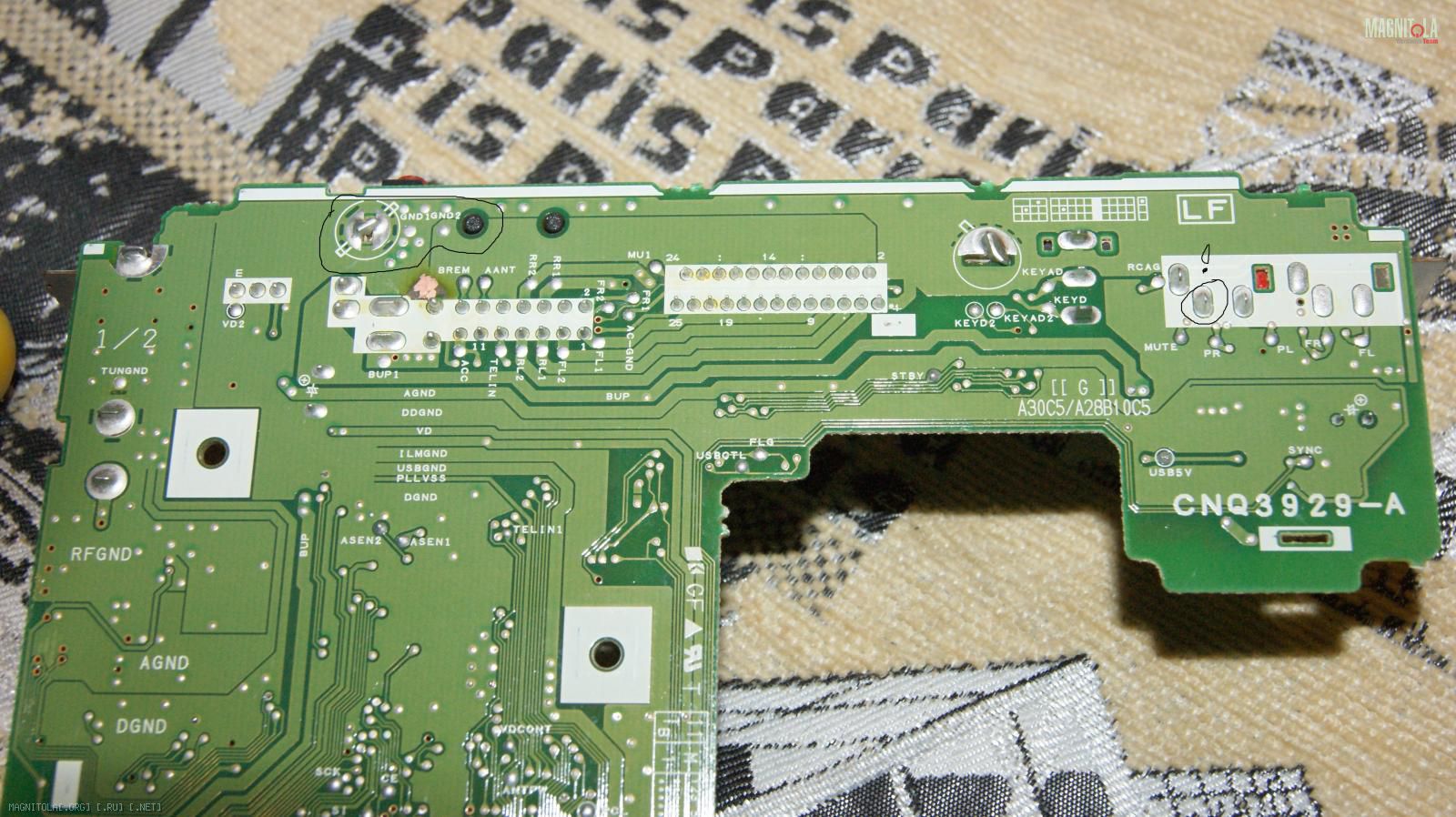 там где gnd все массы на месте. тамгде обведено и восклицат. знавк тоже масса есть. но на корпусе межблока её нет!!! беда.
