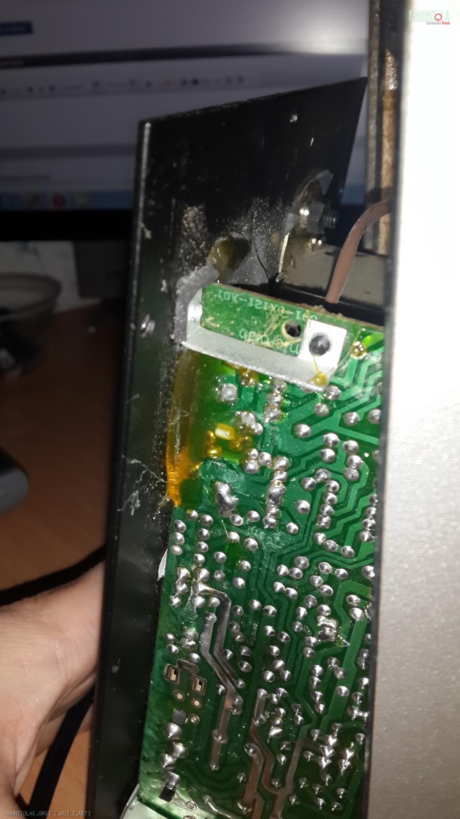 Теперь понятно,плату снимать не надо,пусть так и остаётся.Теперь берём хорошую лупу и просматриваем пайки на печатной плате,подозрительные места пропаять для начала(лучше фото сделать перед этим).,