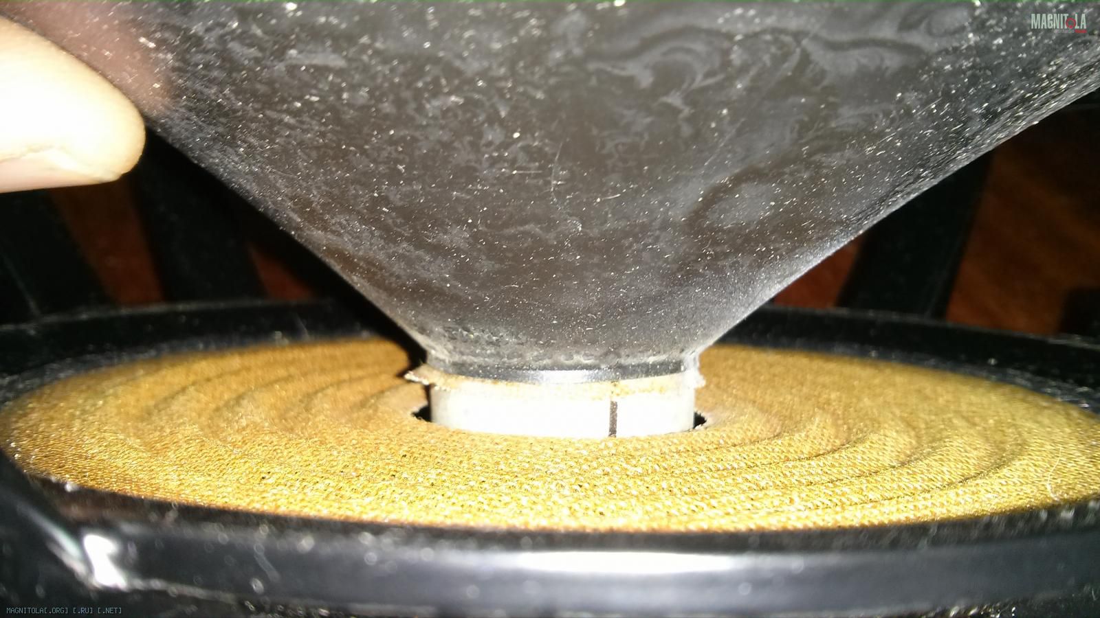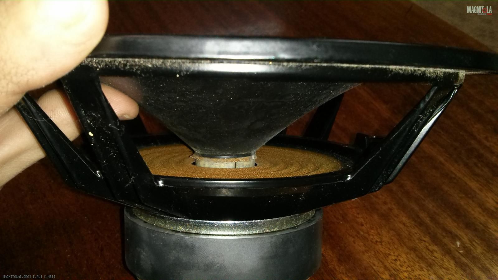 У обоих мидбасов оторвана центрующаяя шайба от диффузора. Катушки целые, на вид не горелые, звонятся