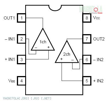 Если знаете,что такое ОУ(операционный усилитель),тогда взять в руки мультиметр и измерить, относительно средней точки вторичного источника питания, напряжения на всех ОУ(допустим 4558 имеется):