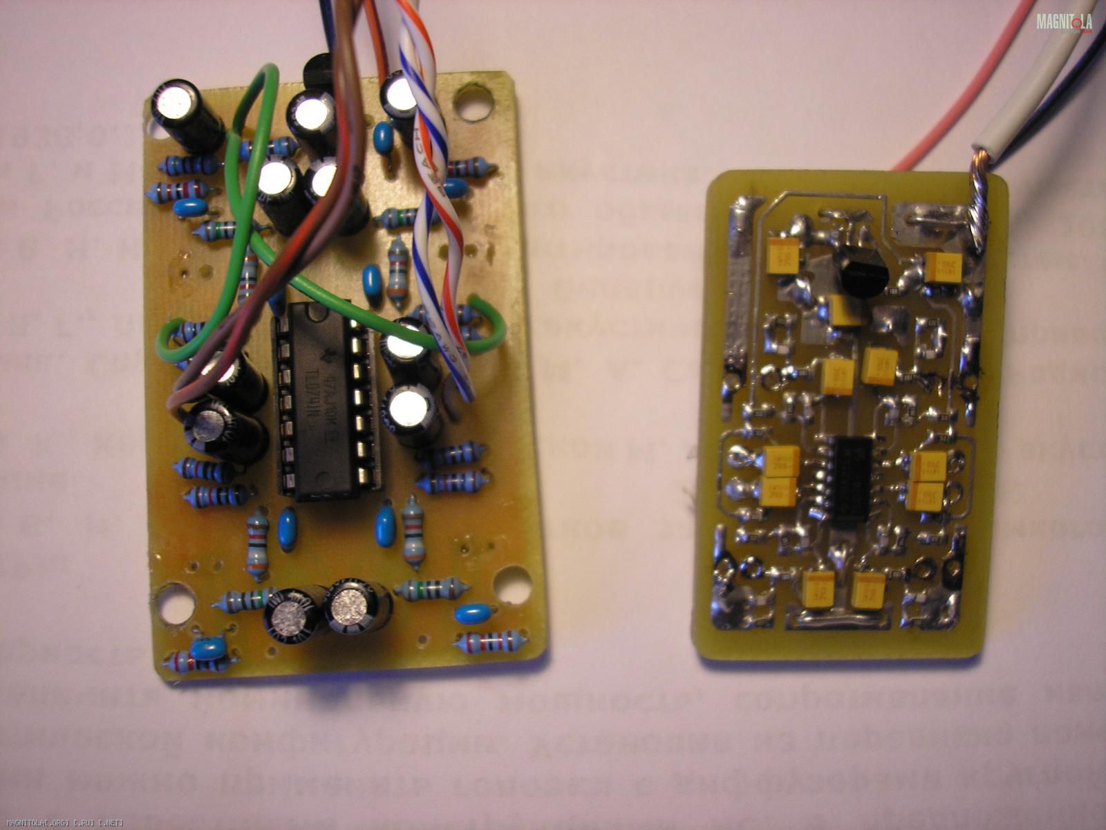 Как развивались события: нашел несколько отчетов по выпайке выходов с Рио и Соляриса (платы одинаковые), прочитал тему на этом форуме про линейные выходы. Спаял плату на SMD, подпаялся к ГУ, подключил к Урал АК 4.90 на четырех мидах от АК-74с, питание от блока питания от магнитольного стенда. Поет только один канал (одна колонка). Странно, переделываю плату на радиодетали обычного размера, подключаю, запускаю: результат такой же. Переподключаю на усилителе на разные каналы. Вывод: Каналы усилителя рабочие все четыре, из всех линейных выходов магнитолы работает только один.Подключаю ГУ в авто: Без изменений - работает только один канал.