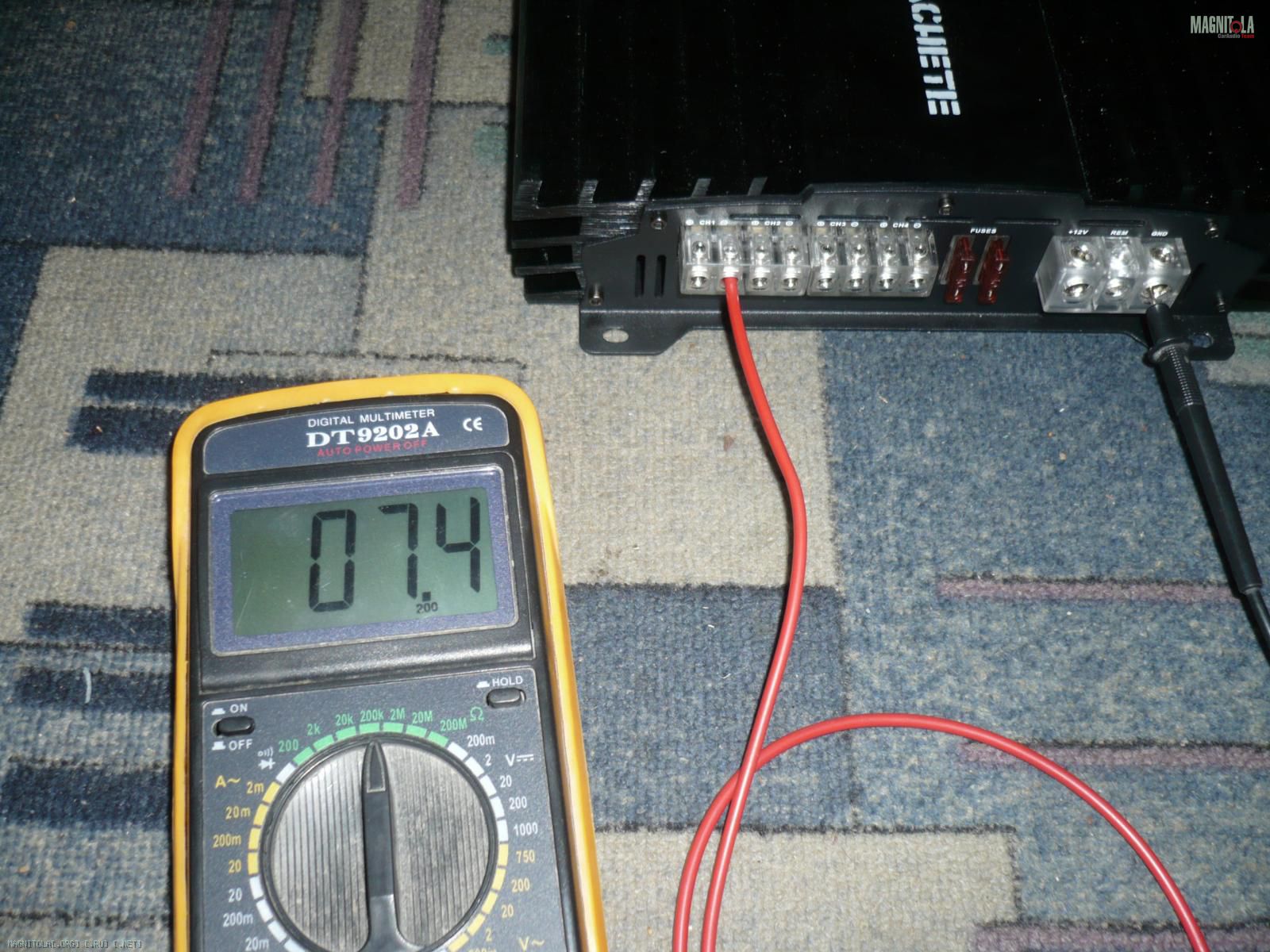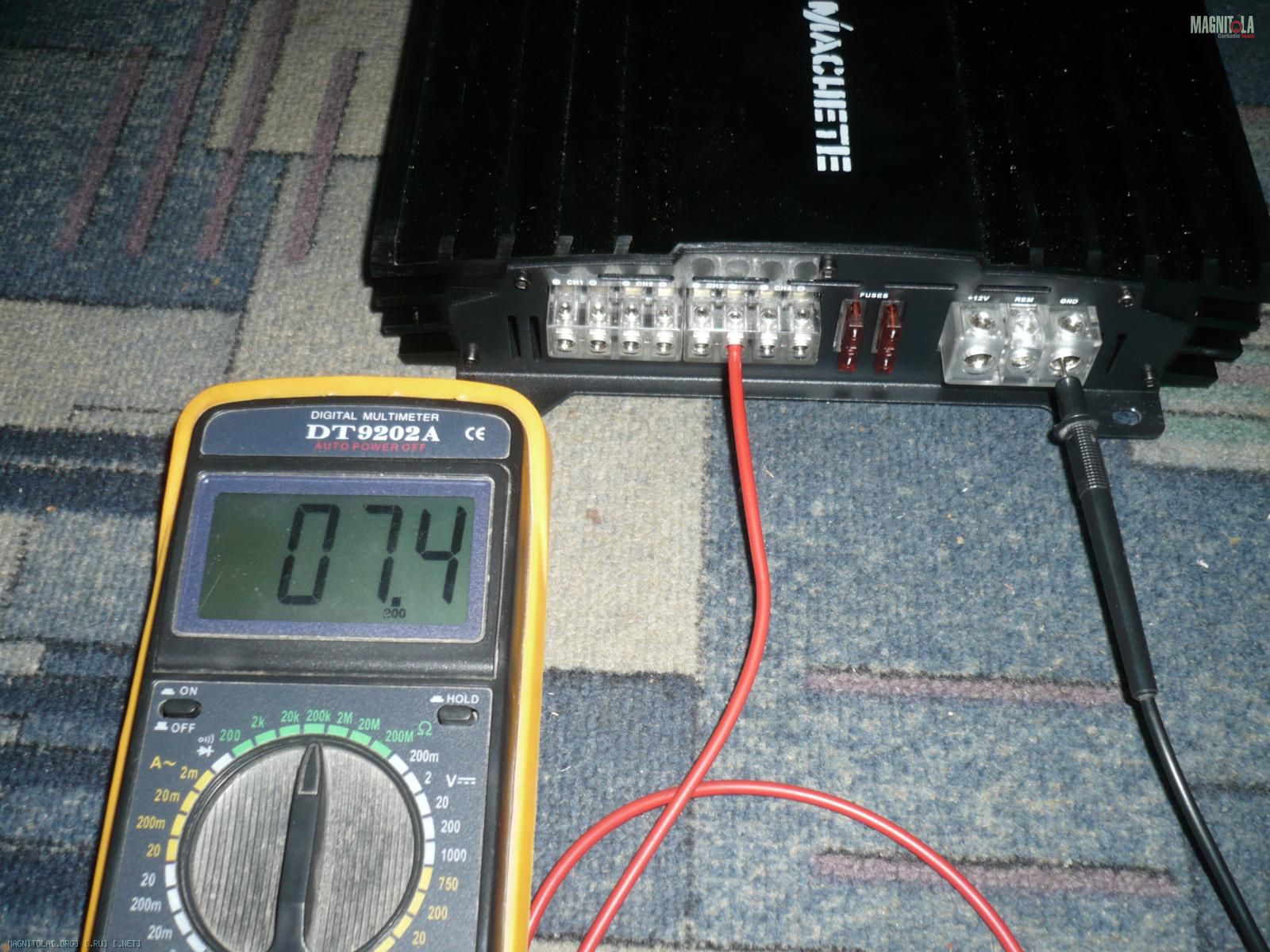Чуть не догнал. Это что надо сделать? Один клещ я ставлю на минусовую клемму уся? Два канала соединить мостом?) Куда второй клещ ставить?