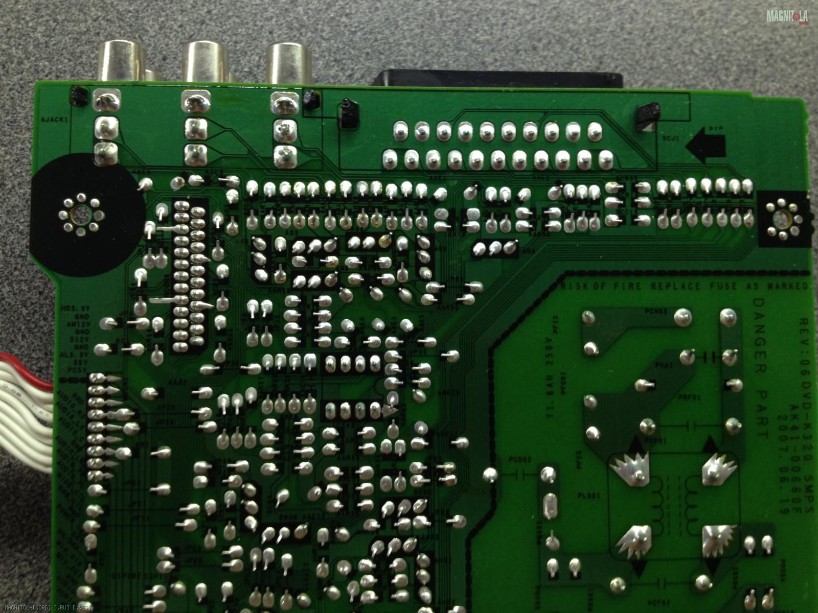 Всем привет и с наступающим. Мой женсовет потребовал на НГ праздники починить караоке(плохо работал привод). Я, как обычно, разобрал, сделал умный вид, снял привод, убрал пыль, Протер глаз спиртом, собрал назад, лишних запчастей не осталось. Но вот беда, перестали работать микрофоны(их я прозвонил, все нормально). Нашёл запчистюлину почерневшую(одна ножка звонится на массу микрофонов). Они точно работали, я помню. Что делать тащить в ремонт или курочит самому, все равно хотел в утиль...