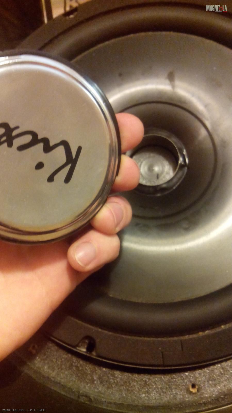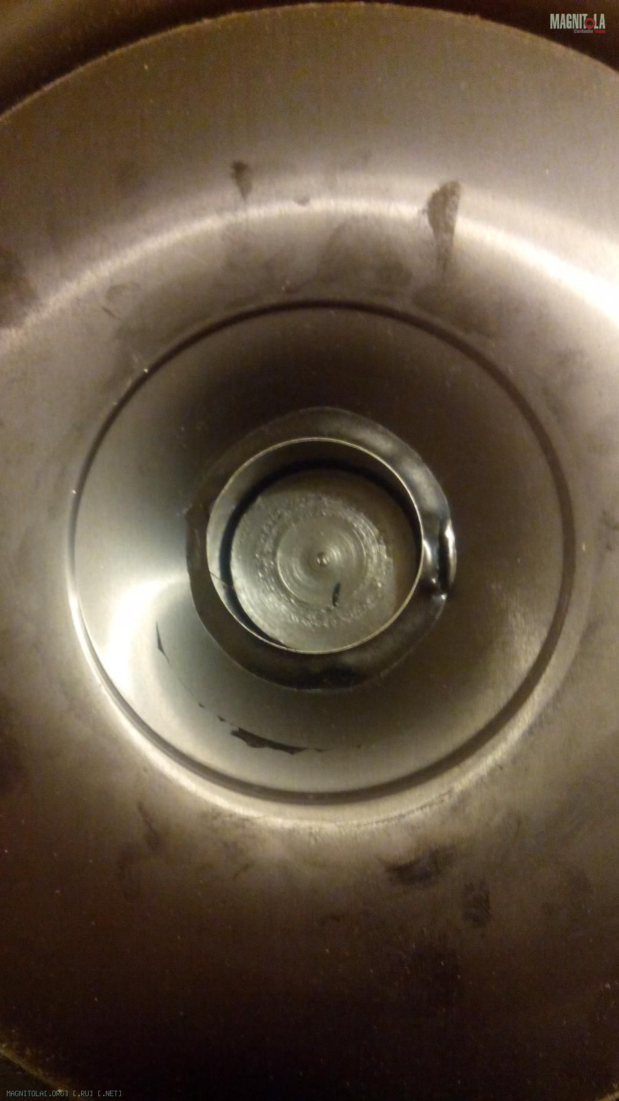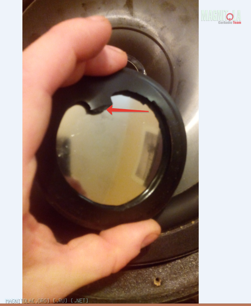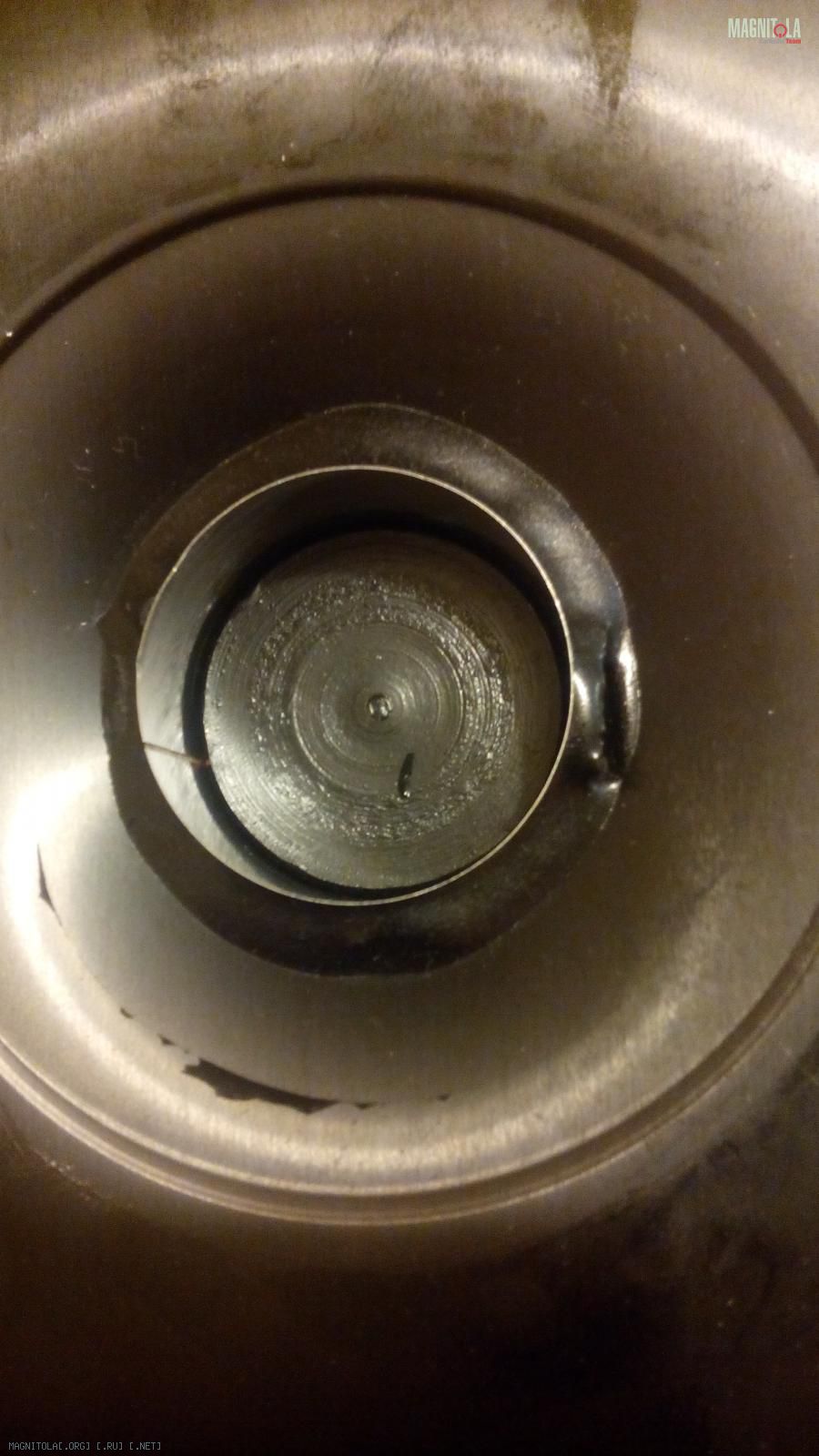 Однако старого клея там очень много. Он выглядит как черная пластмасса на одном из фото ( я указал красной стрелкой) и если я его уберу, то колпачек не будет плотно прилегать к диффузору по большой площади. А колпачек то сам тяжелый...