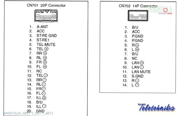 Черный - основной разъем. Точную распиновку для этой магнитолы не нашел,