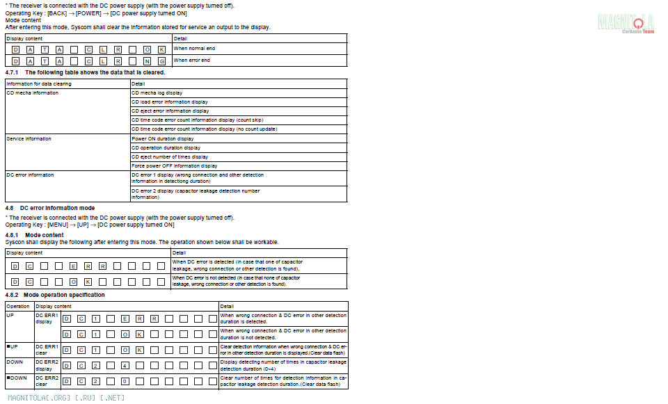 Судя по всему это свежий ЖВС, сталкивался с подобным несколько раз. Первый раз вылетела выходная микросхема (дословно не помню название ошибки которую он выдавал), заменил (от такого же, был донор со сломанной в результате транспортировки платой) ошибка не пропала. Так и валяется где-то, потом было примерно тоже с МС тюнера... Тогда времени разобраться не было, но точно знаю дело не в обвязке и не в МС. К стати, эти магнитолы после удаления сгоревшей МС (хоть УНЧ, хоть тюнера) продолжают выводить ошибку. Поскольку аппараты эти не дороги я долго не разбирался, но очень интересно...