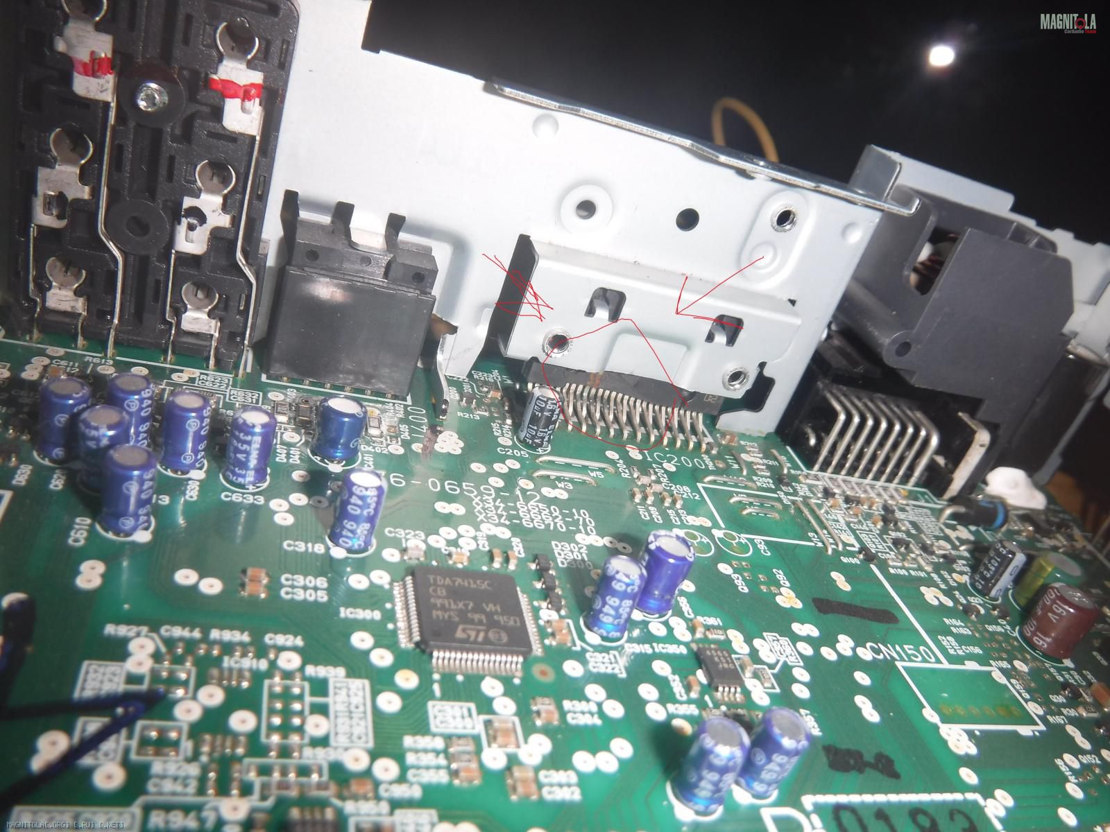 и ярко видны 2 проржавевших контакта которые как раз таки идут на колонки.
