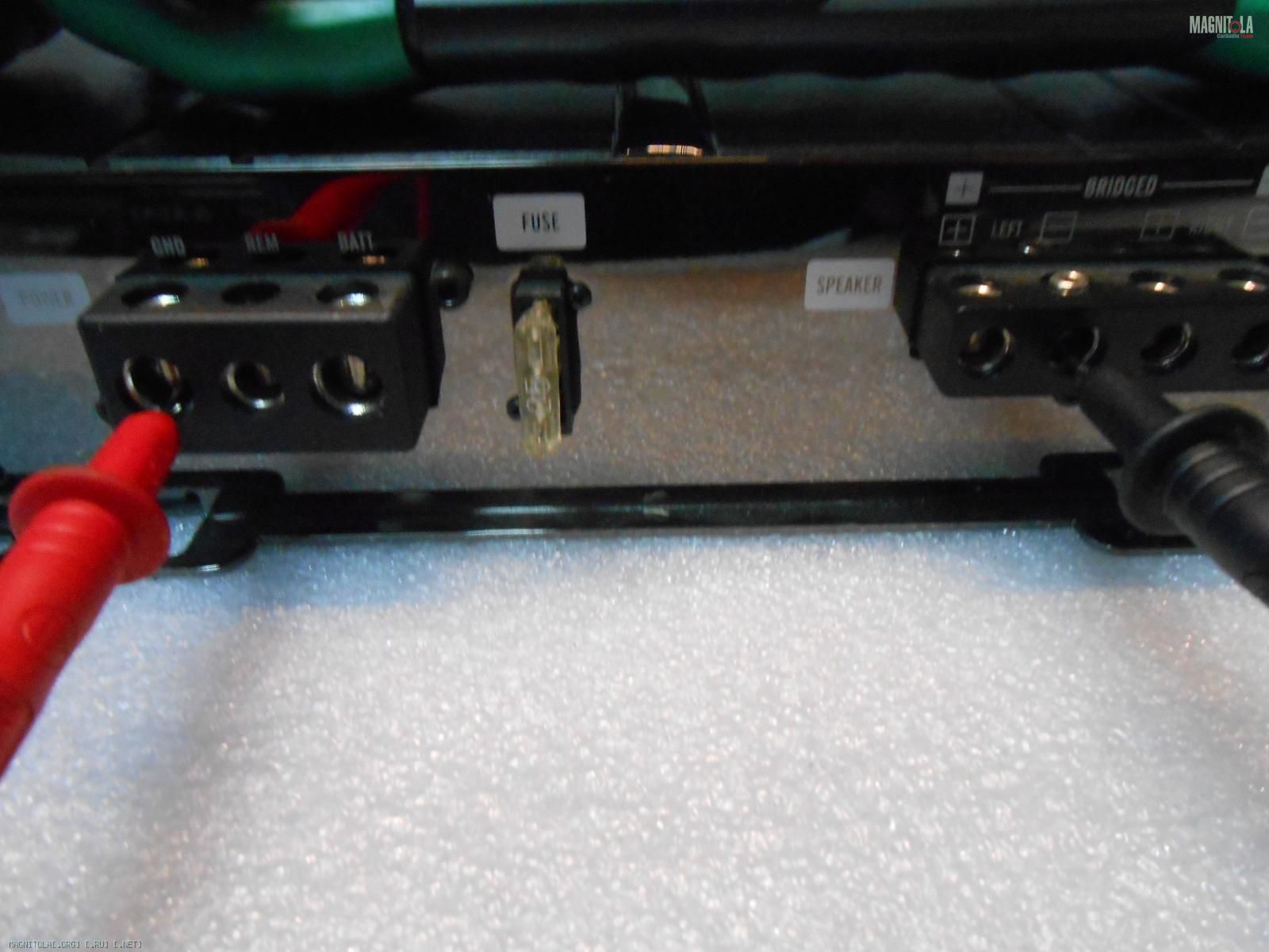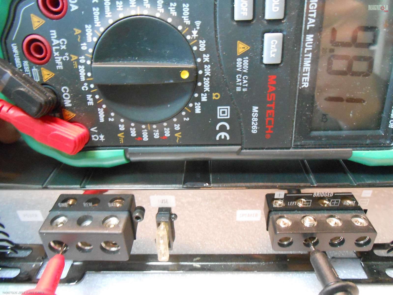 Измерьте сопротивление относительно средней точки выхода АС с минусом питания на клемме,укажите сопротивление(колеблется обычно от 100-до 10000Ом).,