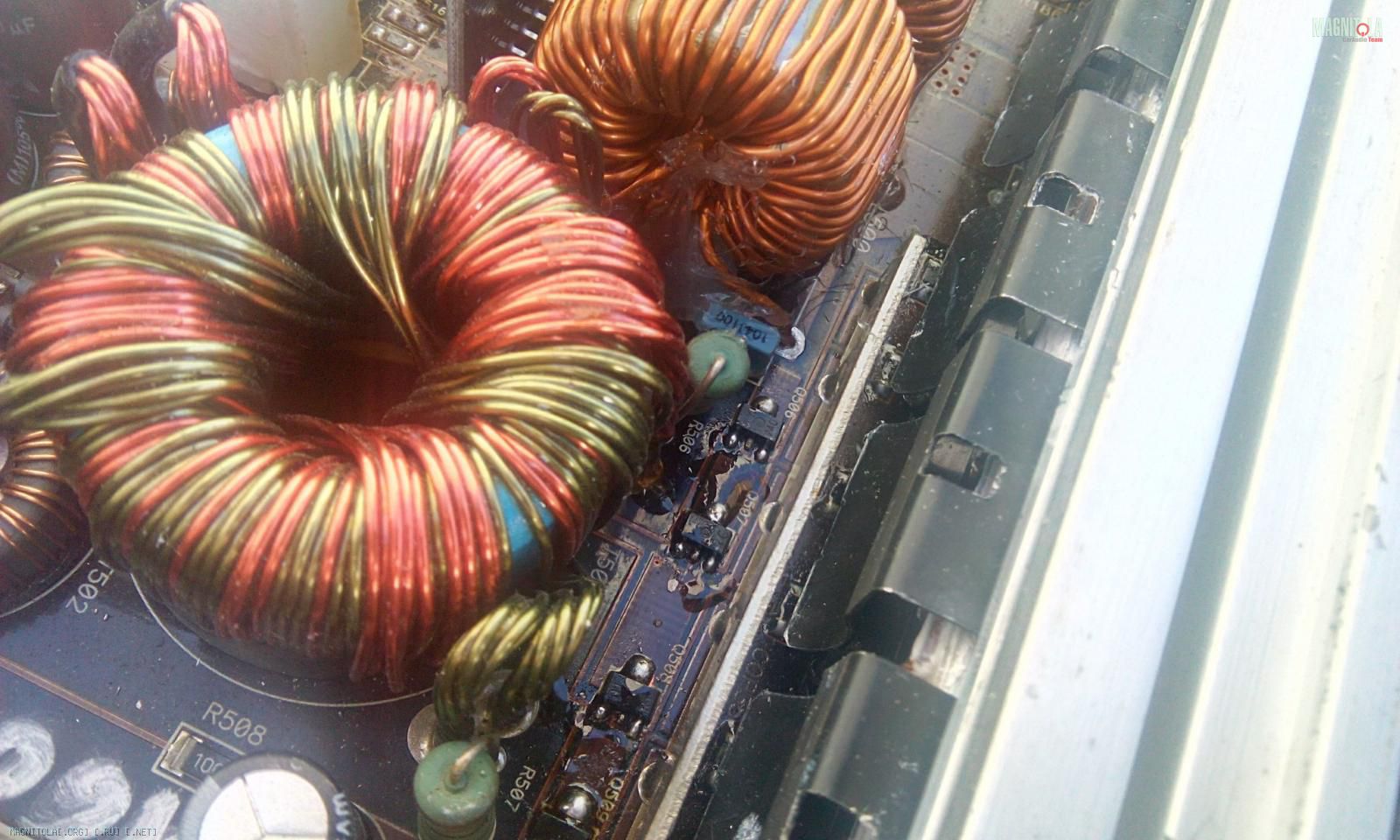 Похоже перематывался один из дросселей, менялись или пропаивались SMD транзисторы и резисторы на затворах силовых транзисторов...