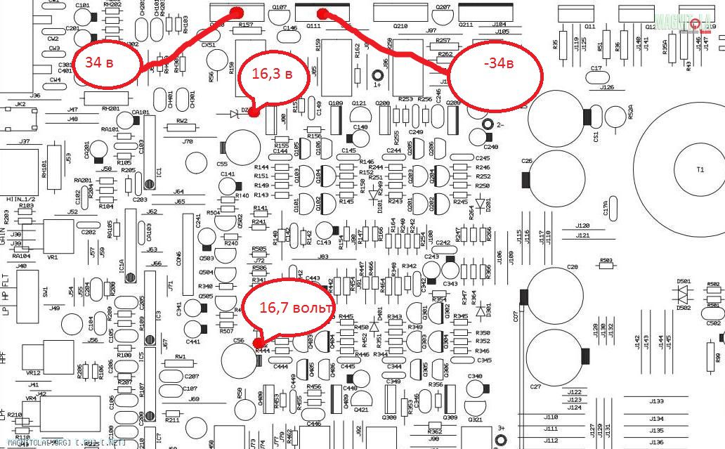на него да скорее всего забыл поставить минус, в аналогичном усилителе видел плату по моему в gta 275 у него резисторы стоят 330ом у меня почему то 180, если заменю на 330 греться так же будет? или не надо этого делать? и у меня хорошие новости, на днях заняться нечем было заметил что на плате плохо пропаяны контакты с завода, я из пропаял ничего боле не делал, звук появился но из 1 канала идет небольшое шипение, я думаю это изза транзистора q109 его пока нет на месте на днях буду впаивать, подскажите пожалуйста еще по конденсаторам, у меня на питании стоят 4 штуки на 16в 2200мф , хочу поставить большего объема, а если вольтаж будет выше, ничего не случится??