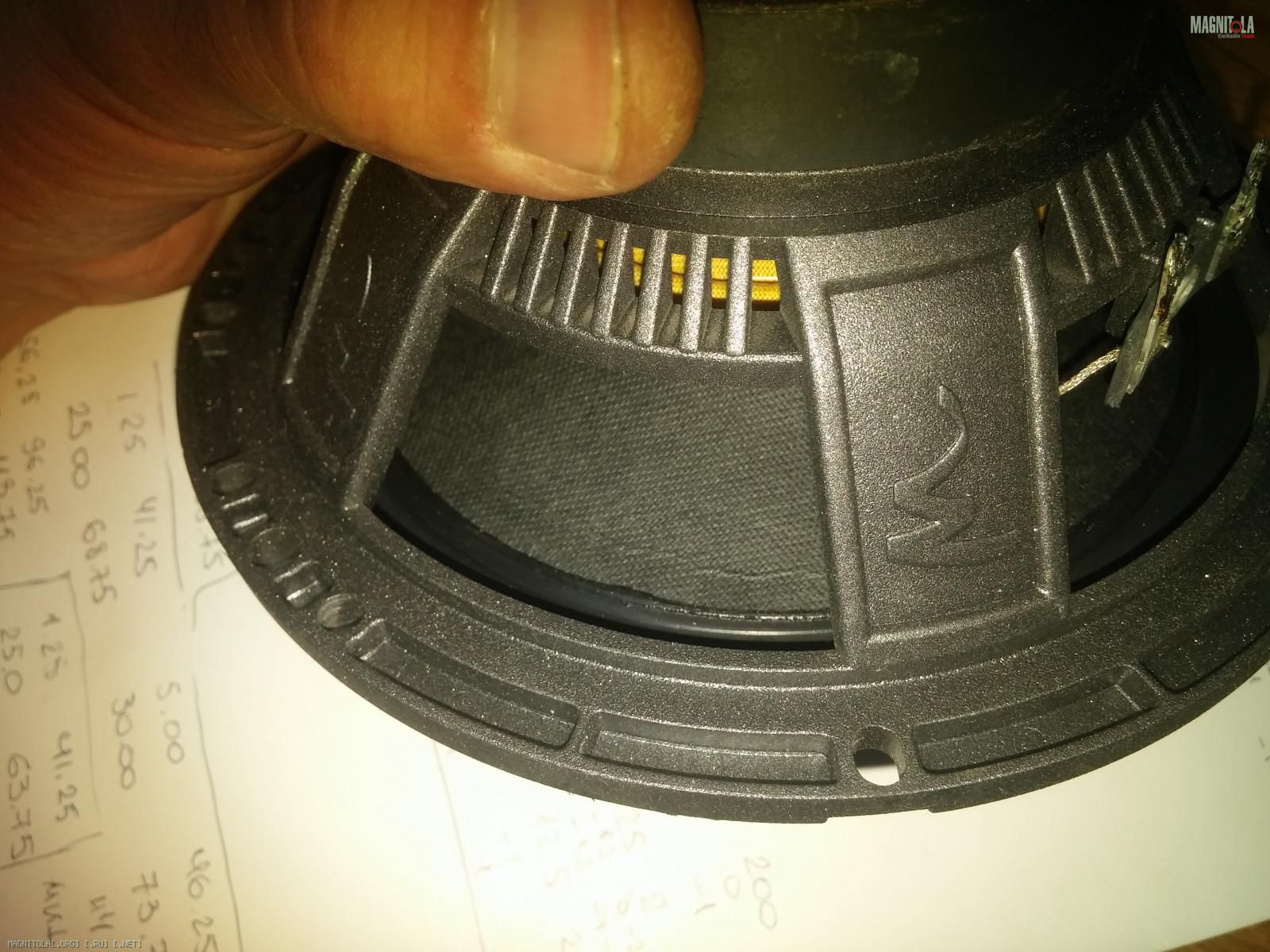 Приветствую уважаемых форумчан! И прошу совета у знающих людей. Сегодня был неприятно удивлен заметив,появившуюся трещину,вдоль подвесов обоих мидбасов.Практически по всей окружности диффузора. Мид Focal polyglass 165 vb. Разлом образовался в бумажном слое.Подложка пока цела,но деформирована.При поднятии диффузора в ручную на максимальный ход в определенный момент на месте трещины происходит излом,обнажая нижний слой. Играли от EOS 35t le2. Как давно случилось не знаю.Но подозреваю что после того как в качестве эксперимента подрезал снизу на 63 Гц 2-порядком.На слух мне не показался этот срез критическим для динамика. Прошу совета Можно ли как-то вернуть их к жизни.В мою систему они конечно же не вернутся.Хотелось бы установить их в дастер вместо штатной акустики от штатной магнитолы.Заранее благодарен всем откликнувшимся.Вложение 1171658Вложение 1171660Вложение 1171662