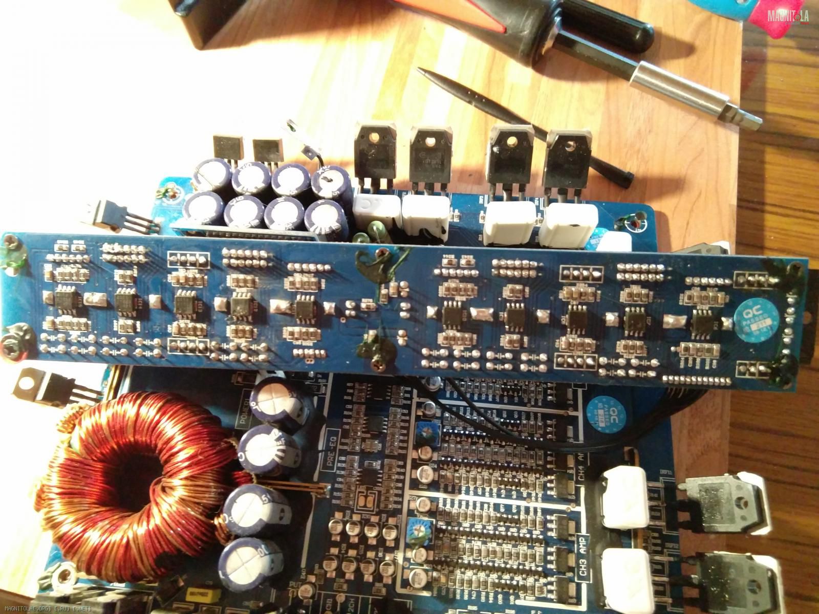 , а не только на сгоревшем) но руки не дошли вынуть усилитель на ремонт.(снимать водительское сидение надо) Благо, что пока работает на двух каналах.