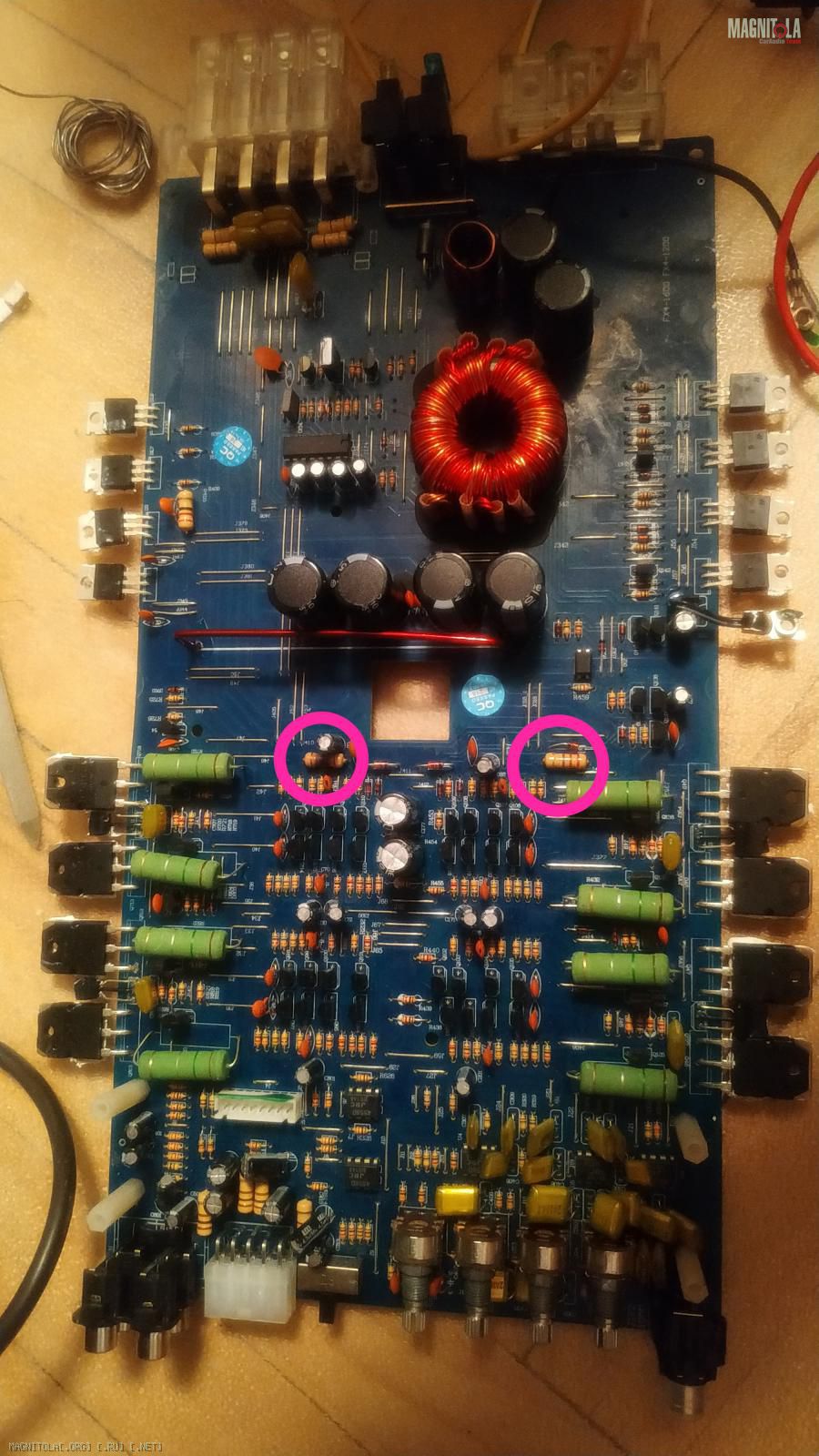 Один уже подгоревший, правильнее их оба заменить на новые, керамические 3-5 ватт и установить над платой, чтоб лучше шёл процесс естественного охлаждения, а не как в заводском варианте вплотную на плату.