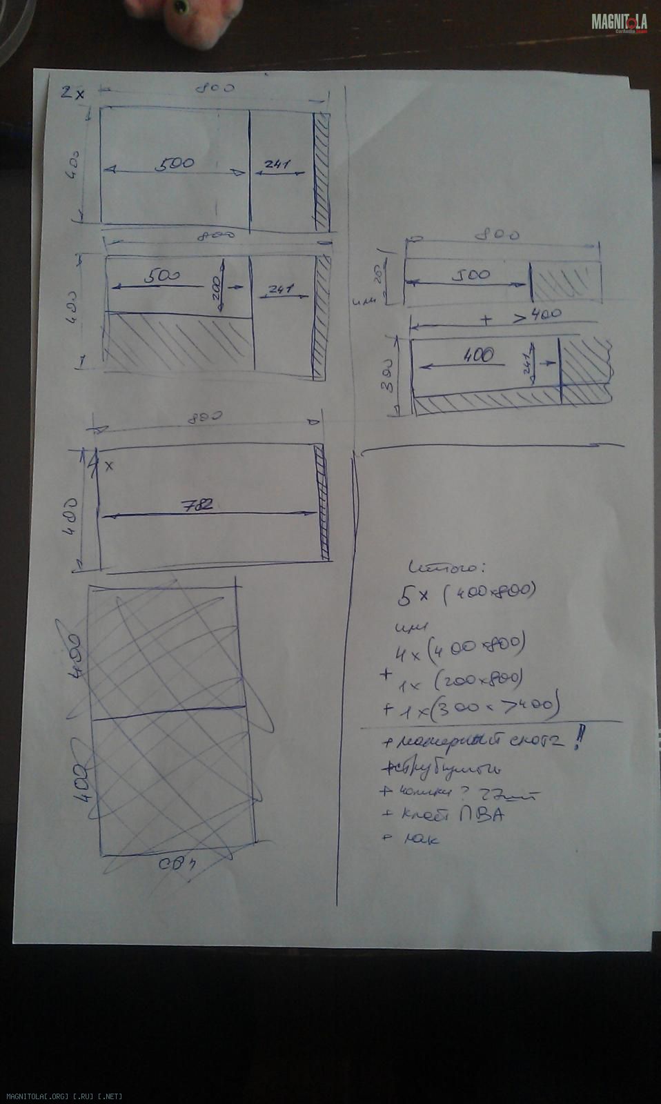 Решение пришло само собой при посещении Леруа Мерлена (благо, ближайший всего в получасовой пробке пяти километрах, сразу за МКАДом). Итак, рисуем эскиз и варианты распиловки досок