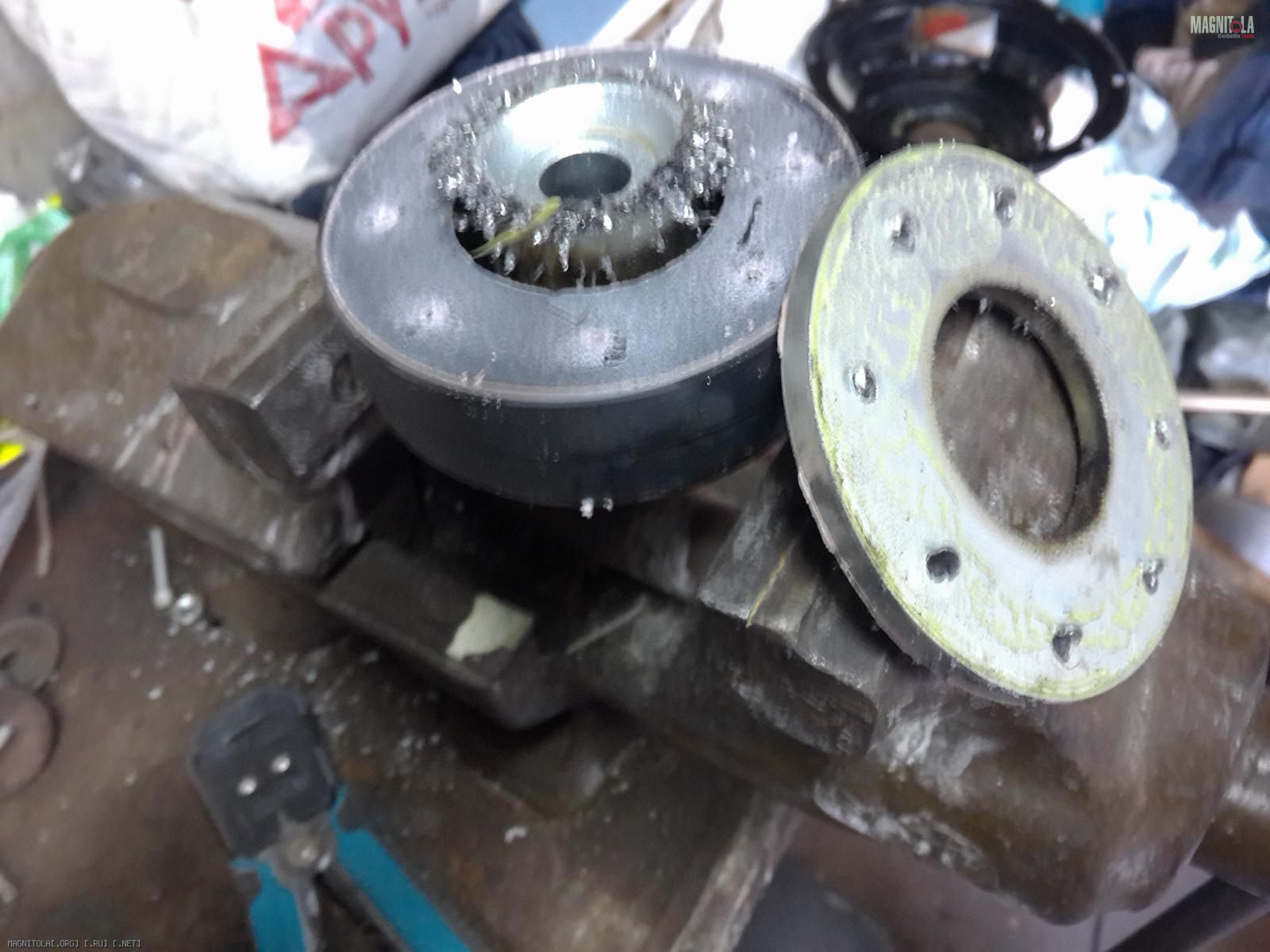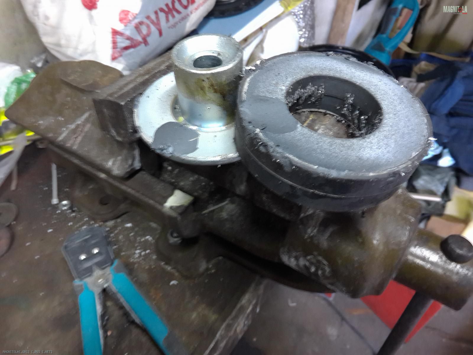 И так, разобрал саб до конца. На заклепках просто крепилась корзина, высверлил сломав 2 сверла))). Проще стало добраться зубилом до шайбы