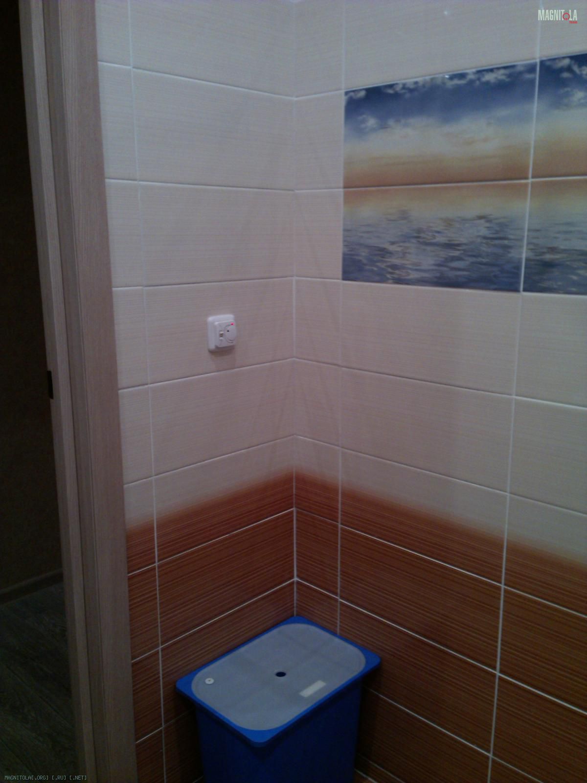 Потолок ПВХ и 4 диодных лампы. Также еще надо закрыть вентилятор, тесть плитку уёво срезал :D