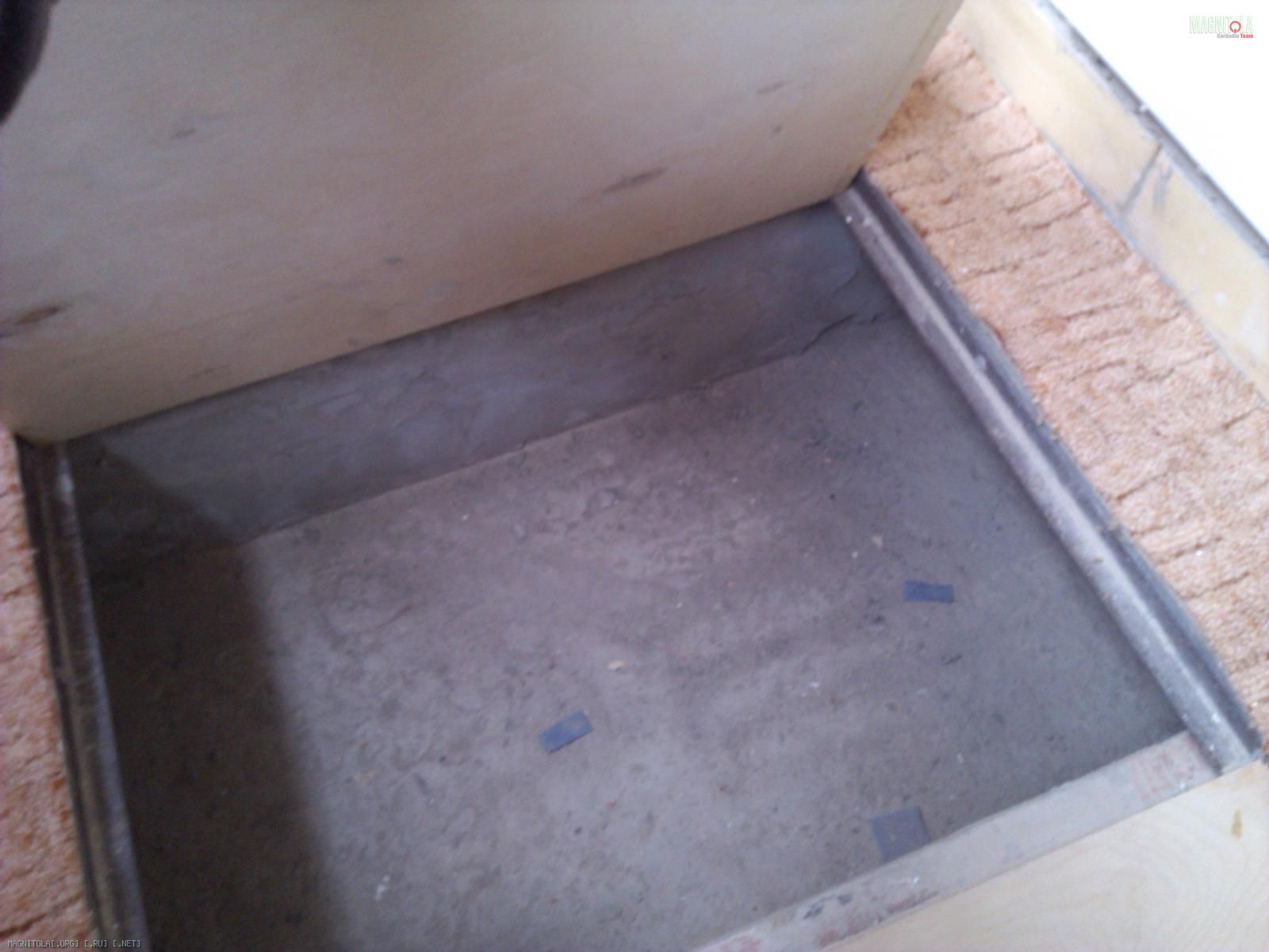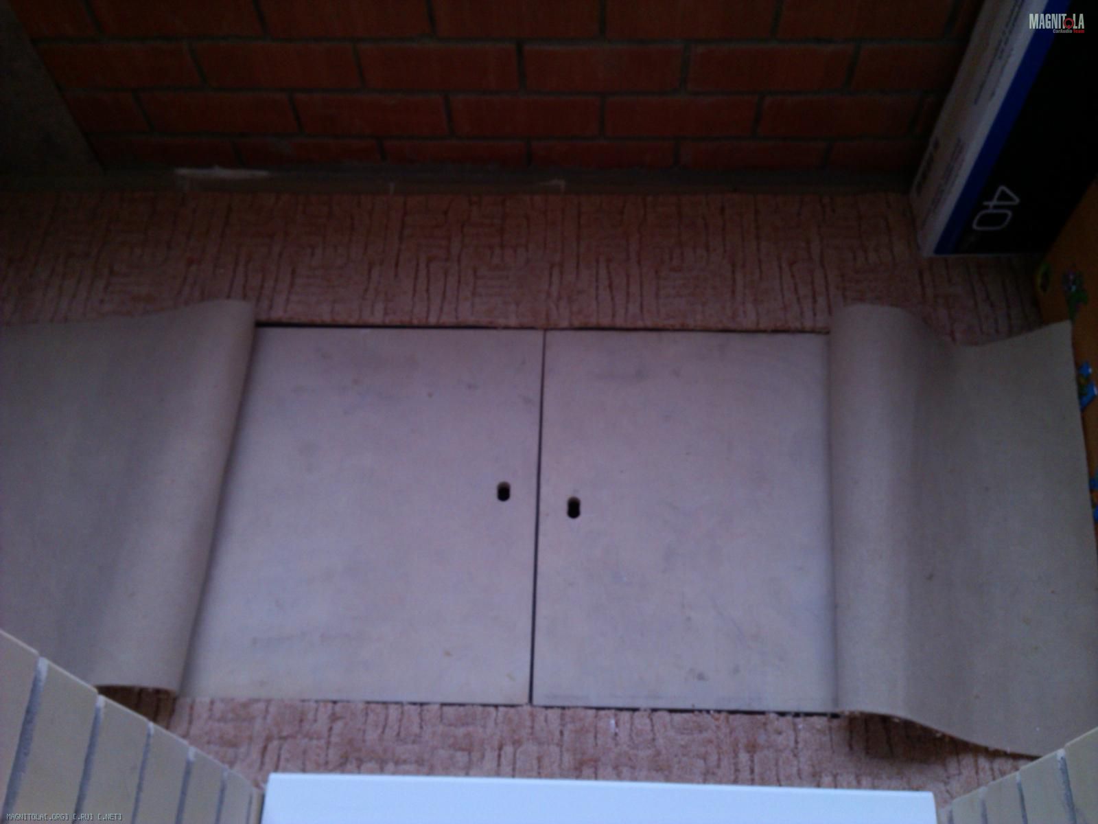 На полу ковролин, под ним тестева гордость, он её сделал еще даже ДО стяжки пола в квартире, так горел этой идеей - погреб! (балкон был очень глубокий!) Две створки, в глубину без проблем встает 1.5-литровая банка. Чуть позже проложу его фольгированным изолоном и будет отличный всесезонный холодильник