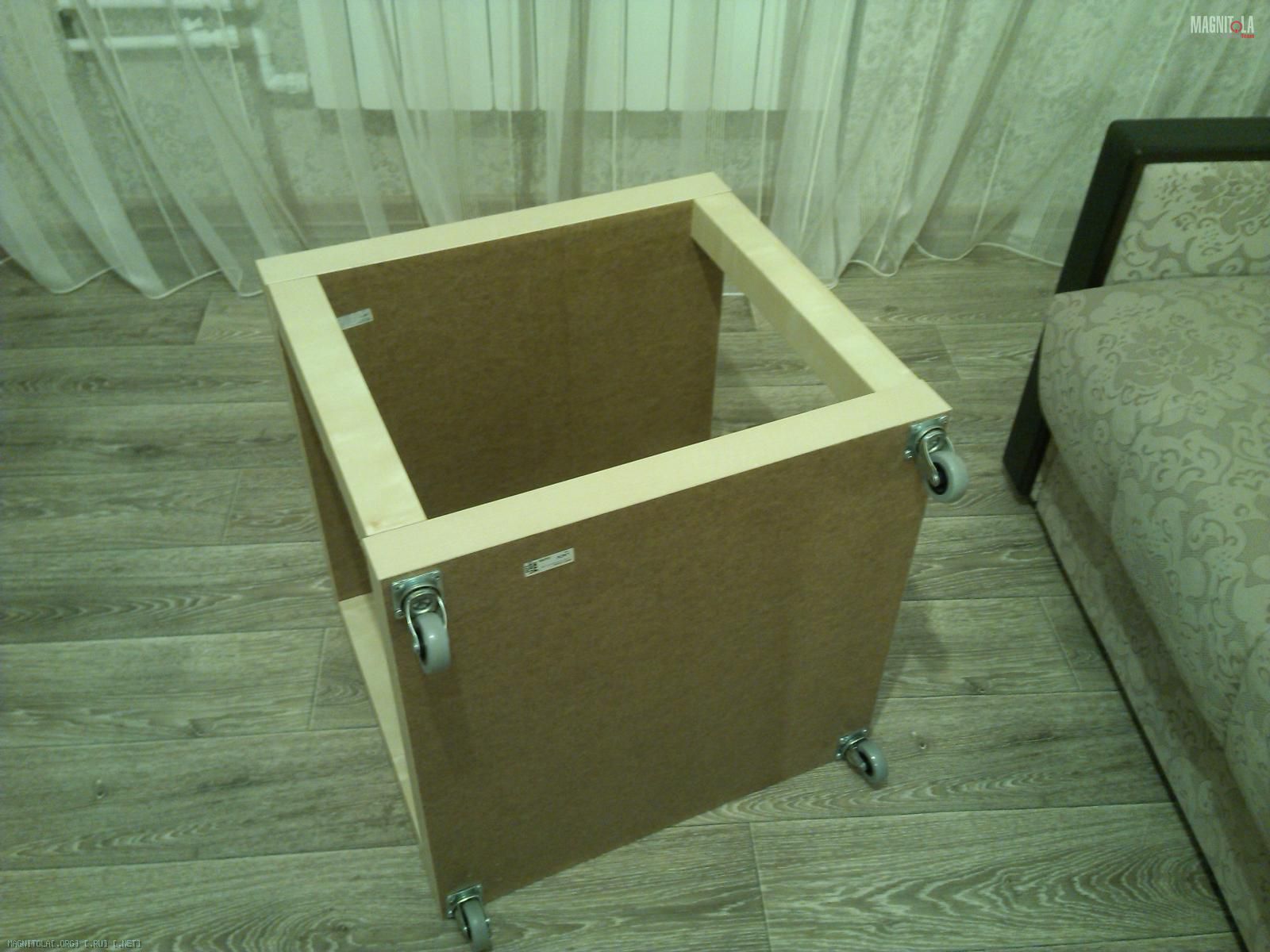 Поэтому было вовсе не жалко купить два, один комплект ножек выкинуть и с помощью колёсиков замутить крутую этажерку!