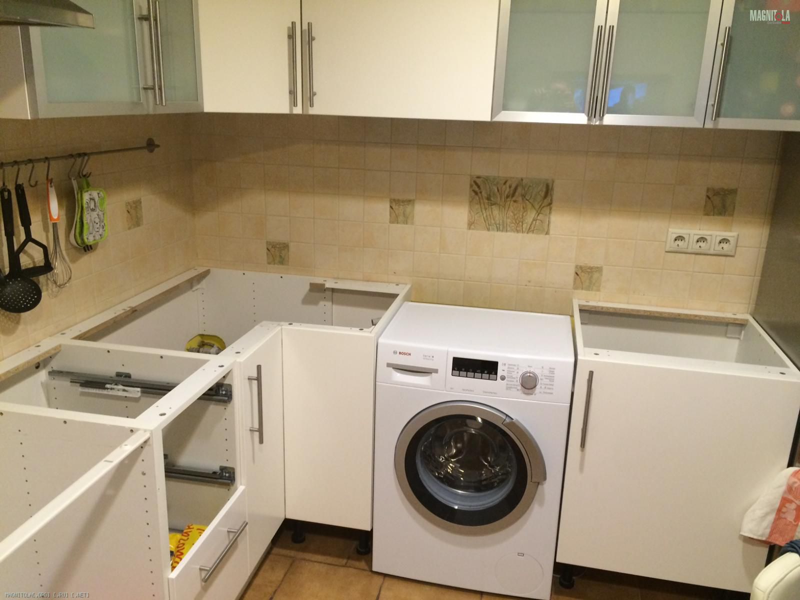 Стиралка поселилась временно, после хотим переносить в ванную. После того, как немного переделаем и организуется свободное место под стиралку