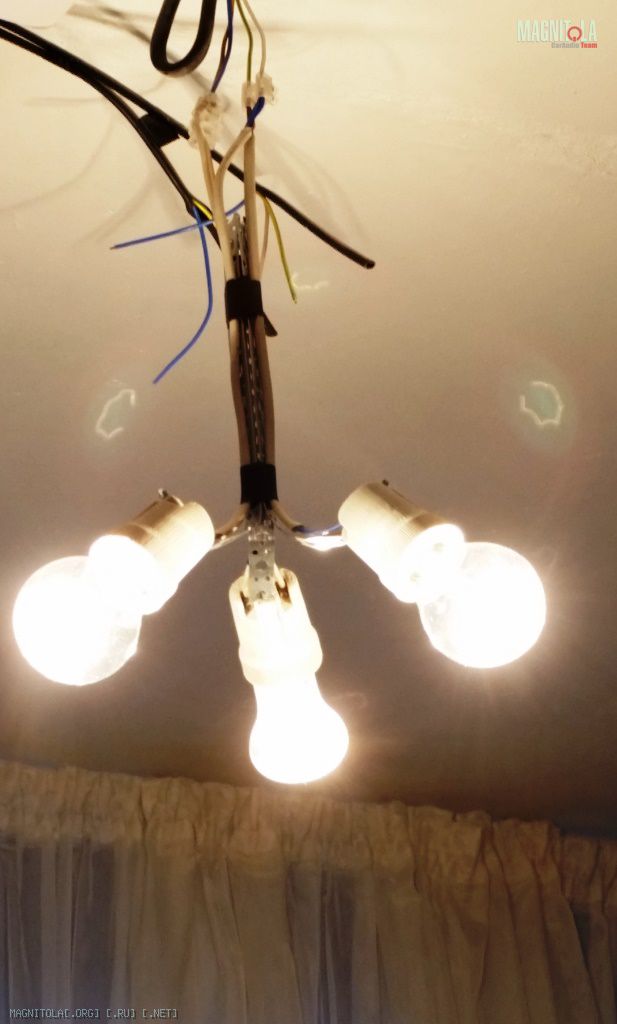 Андреичъ,со своим светящимся столом сподвиг меня на кой-какие переделки))) Так как люстра,которую хочется не входит пока в мой бюджет было принято такоерешение ))) Ну а чтобы не видеть этого шлака лампочки я туда поставил самые яркие,чтобы того,кто поднял глаза слепило сие великолепие))) В общем зафеячил я "люстру"