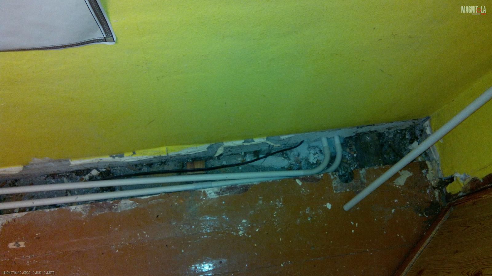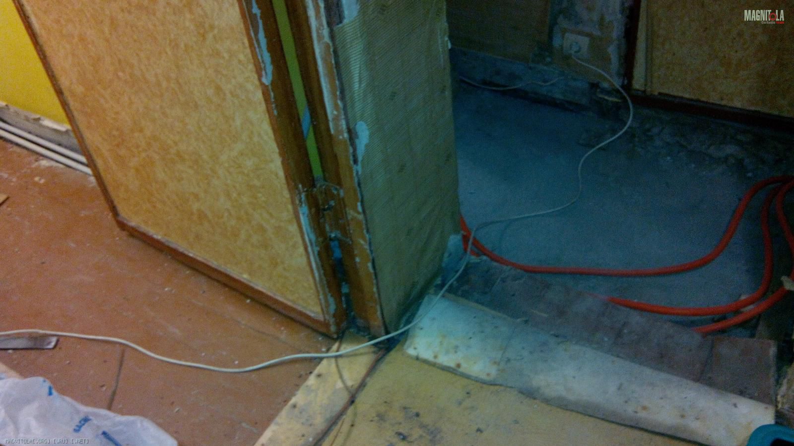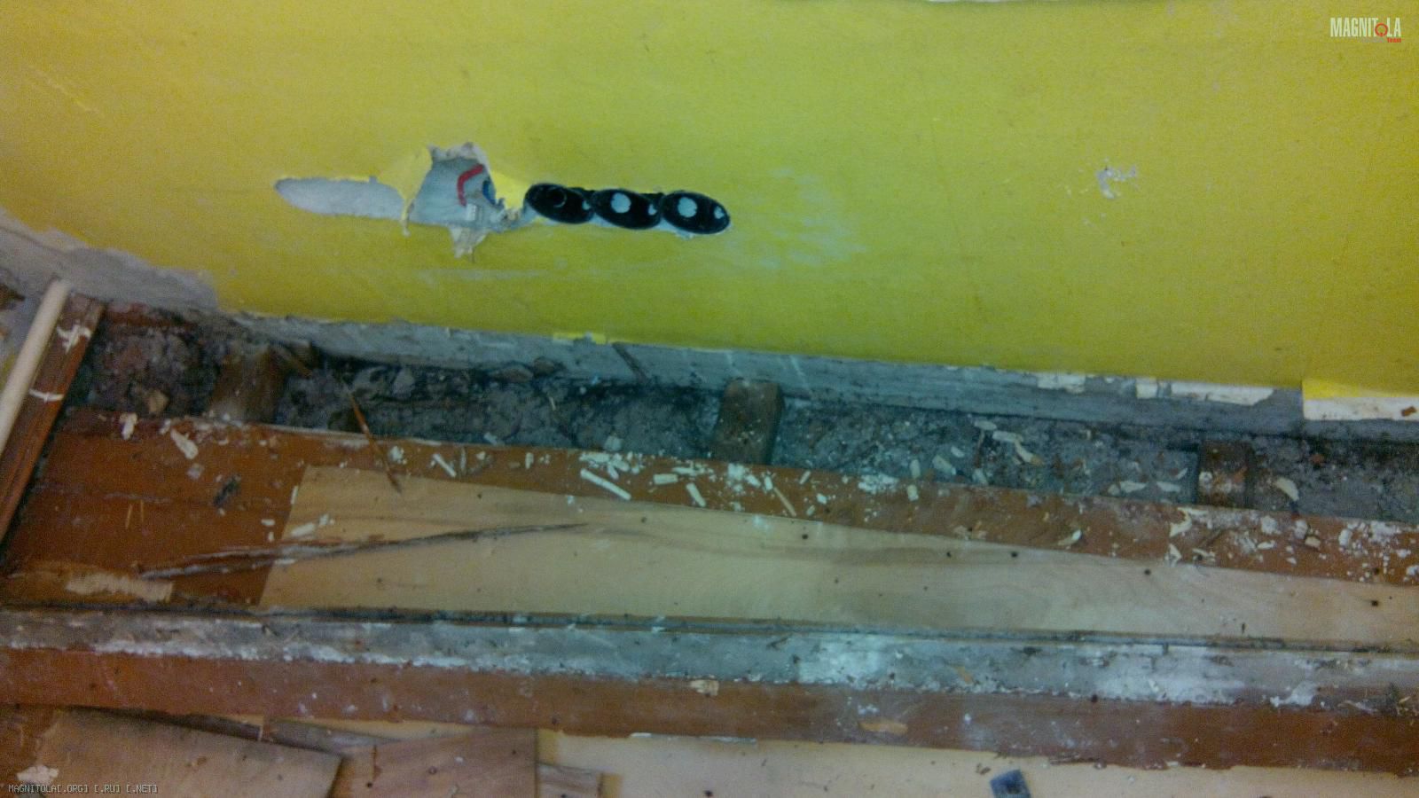 Затем оторвал плинтус в прихожей. И обнаружил что внизу стены есть "проход" в электрощит.
