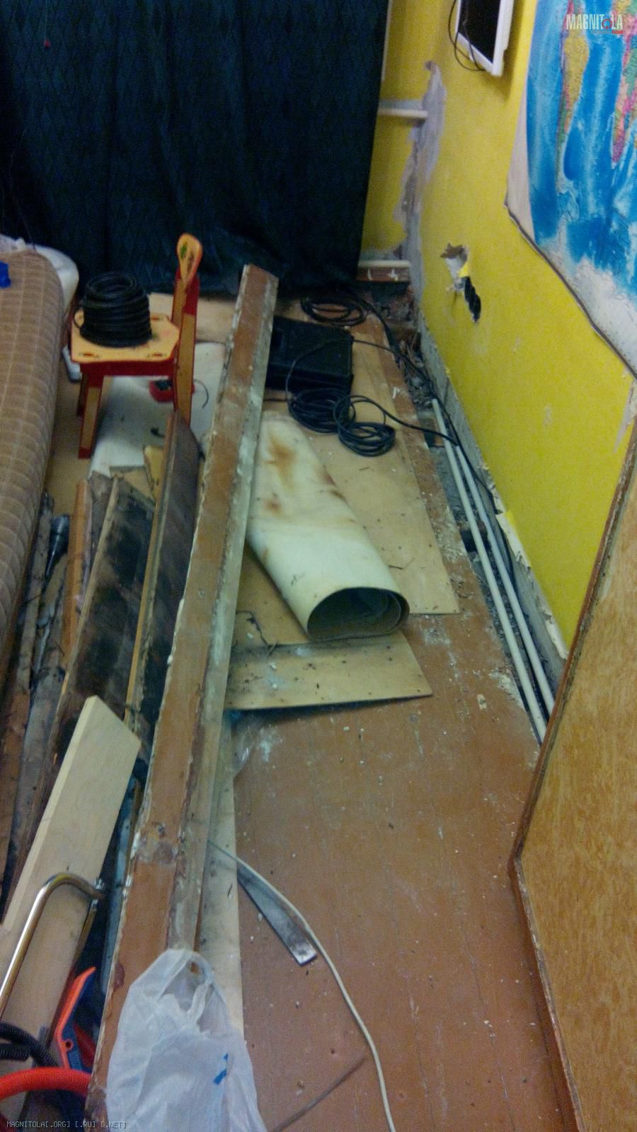 Ну и продолжил отрывать доски уже в прихожей. Хотел кратчайшим путём и под полом.