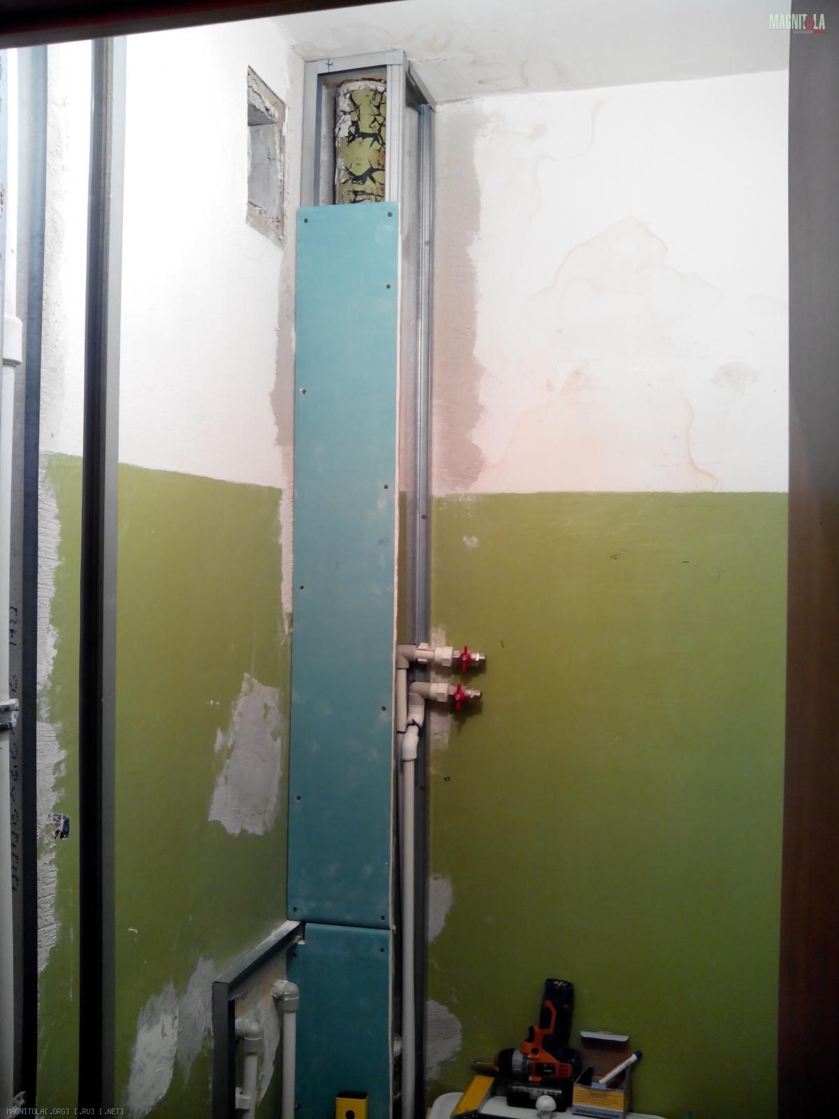 Запилил короба. Делал не себе, так что пришлось вписывать в то как есть и вариантов переделать трубы нет.