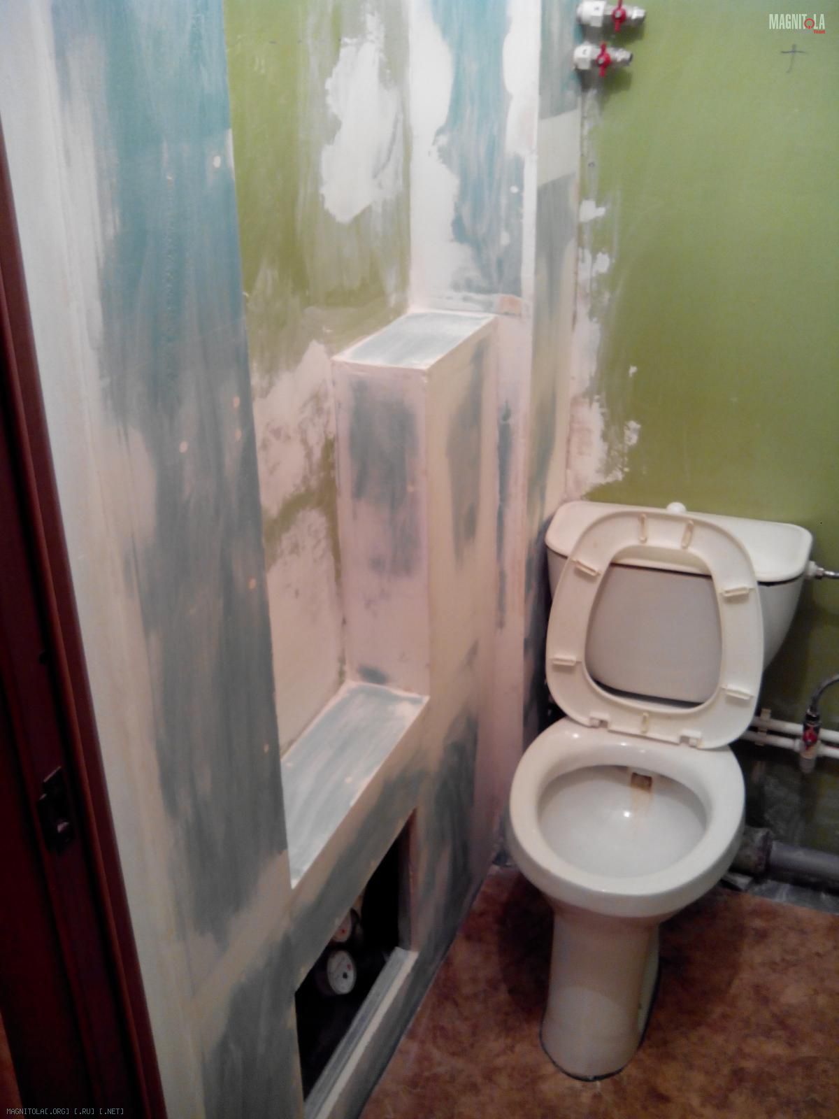 Упитаз мешает чтобы закрыть одним углом, надо или передвигать или ступеньку делать.